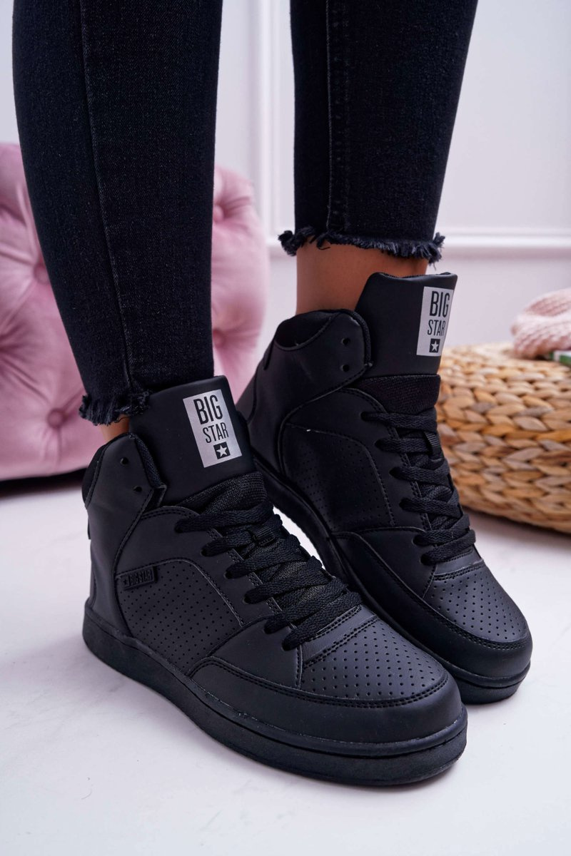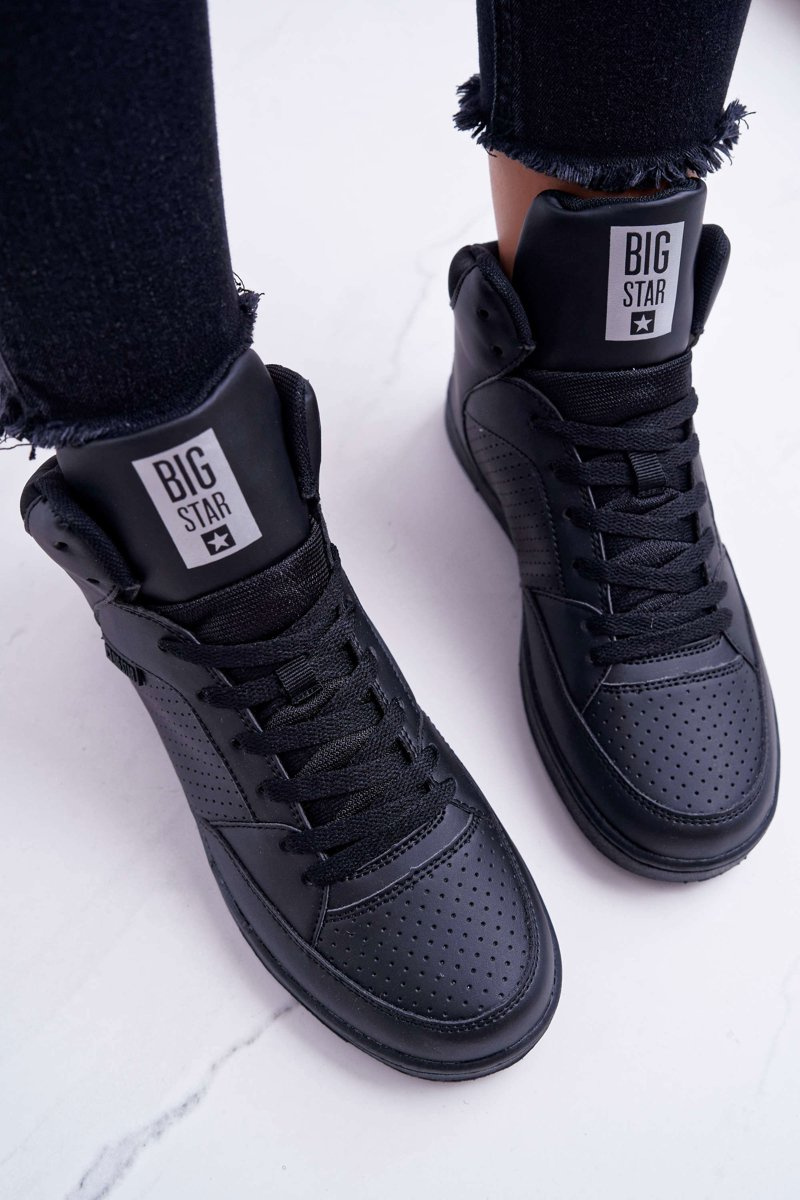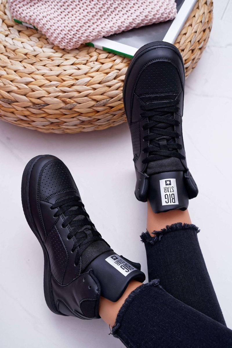 Dámske tenisky s veľkými hviezdami Wysokie Black EE274211