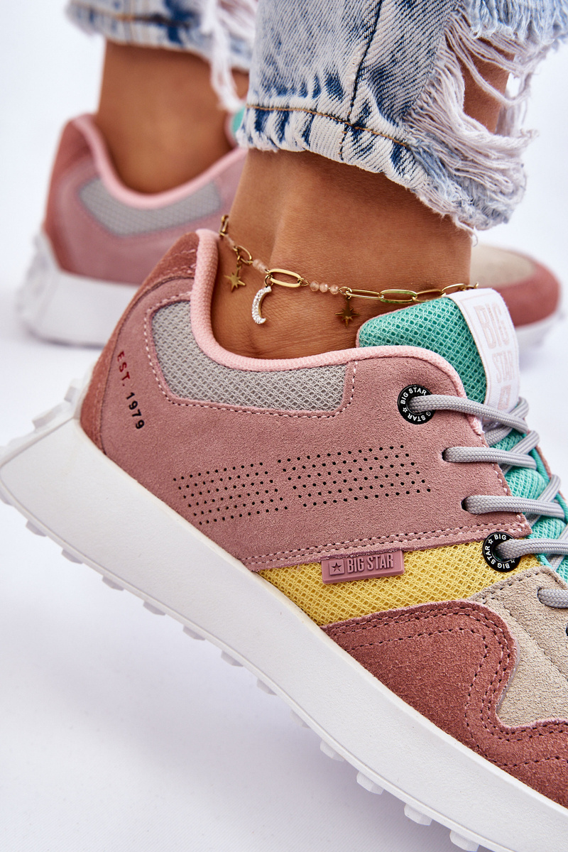 Big Star topánky boli vyrobené z prírodného semišu v kombinácii s materiálom zo sieťoviny. Tento model je ideálny na prechádzku po meste, stretnutie s priateľmi alebo nakupovaním. Topánky majú mäkkú vložku vyrobenú z trvanlivého a oderu rezistentného materiálu. Mimoriadne pohodlné počas každodenného používania. Nastavte na platforme a podrážky s kartami. Tento model bude určite prispôsobený mnohým štýlom! Pri výbere veľkosti, navrhnite tabuľku veľkosti.