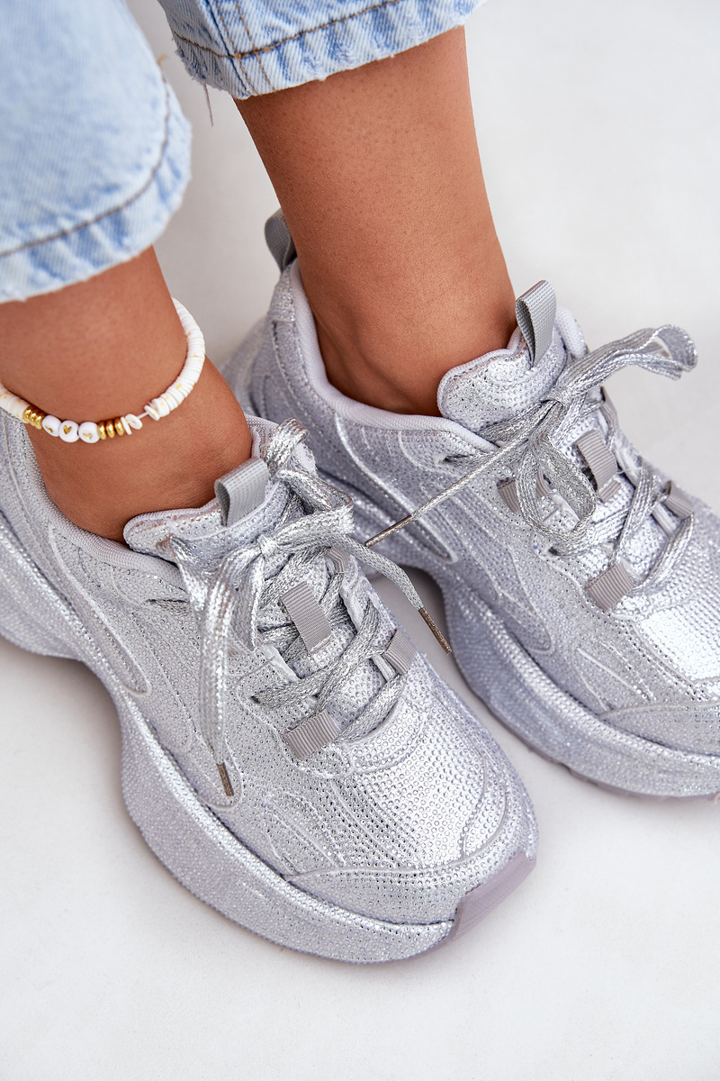 Dámske Tenisky Zdobené Kryštálmi Strieborné Porrot
