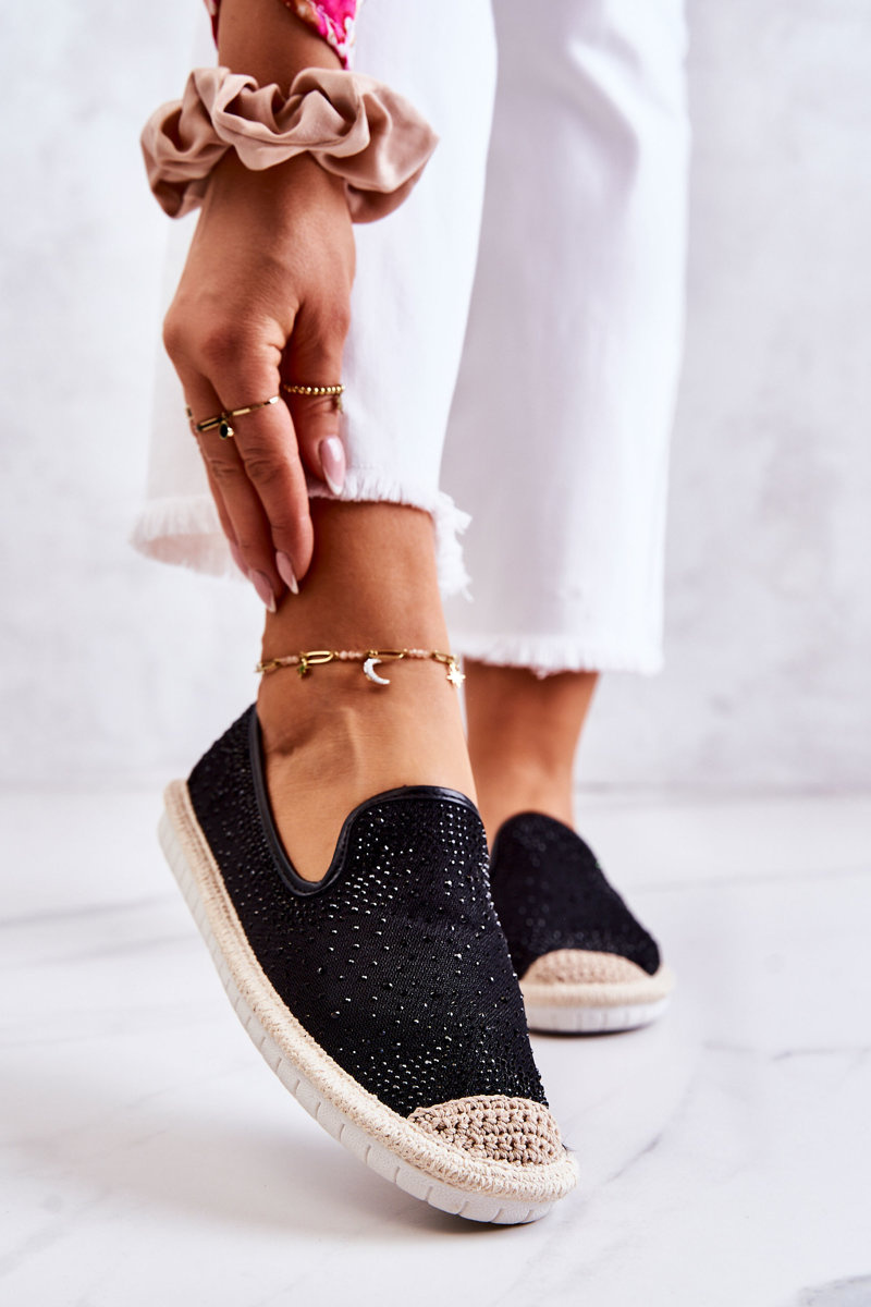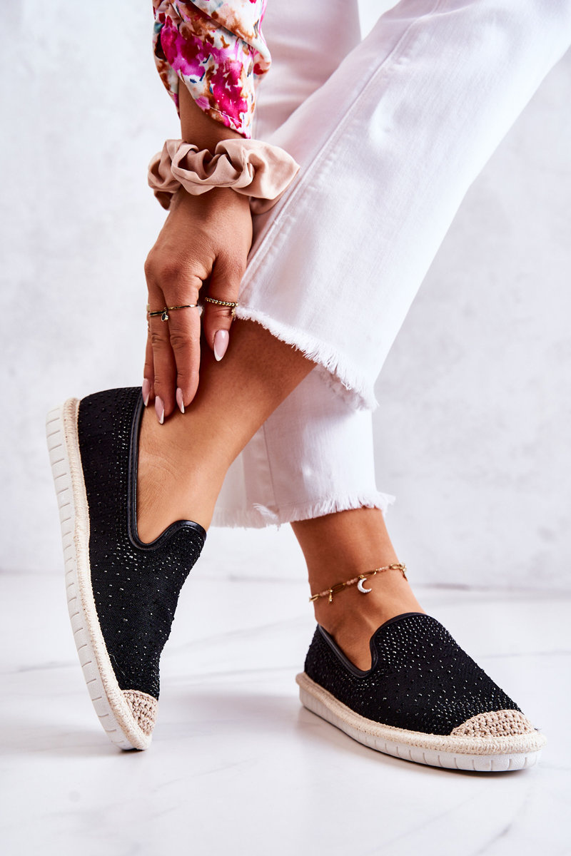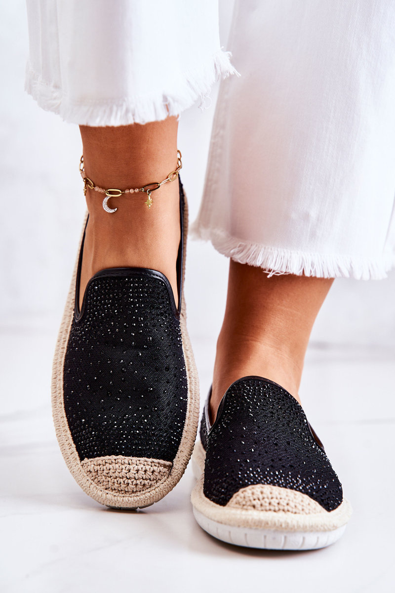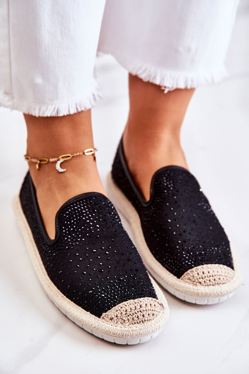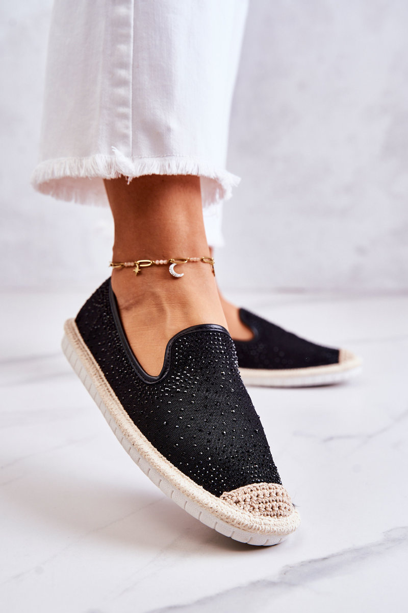 Towar wprowadzony przed 13.12.2024Tak Dámske tkaniny espadrilles s kubickým zirkónia čierny deimos
