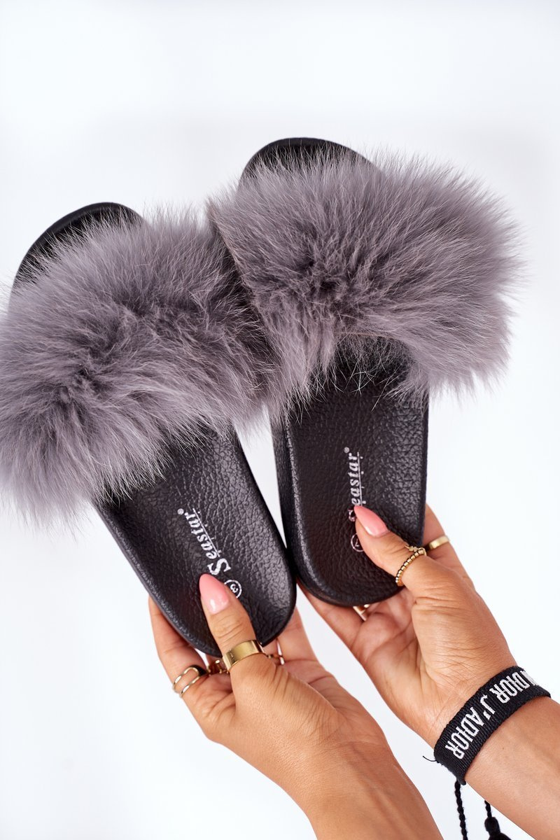 Dámske tmavo šedé papuče s kožušinami Belmondo
