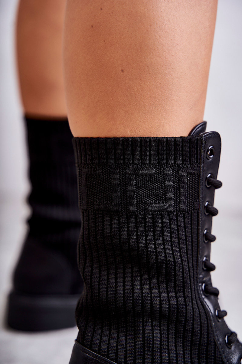 Klasické topánky s vyššou hornou časťou z kombinácie ekologickej kože a elastického pruhovaného materiálu. Klasicky šnurovaný model. Topánky boli umiestnené na plochú pätu a jemnú plošinu. Päta je stuhnutá. Vložka do týchto topánok je izolovaná prikrývkou obuvi. Skvelý model pre mnoho štýlov! Pri výbere veľkosti navrhnite tabuľku veľkosti.