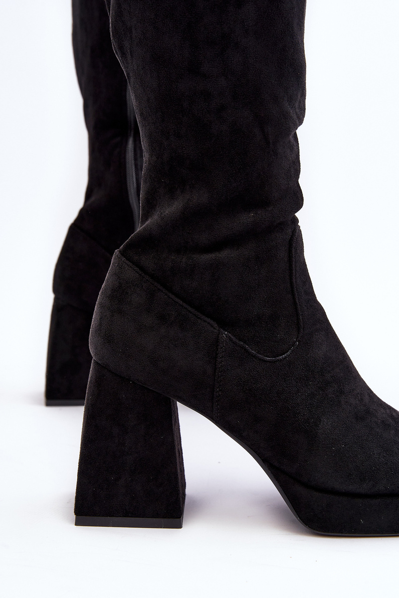 Dámske topánky s zvrškom kolena. Nastavené na masívnej platforme a podpätkoch vo forme príspevku. Tento model je pripevnený posúvačom na boku. Izolovaná vo vnútri obuvou prikrývkou. Noski na námestí. Ideálne pre šaty alebo sukne! Pri výbere veľkosti navrhnite tabuľku veľkosti. p>