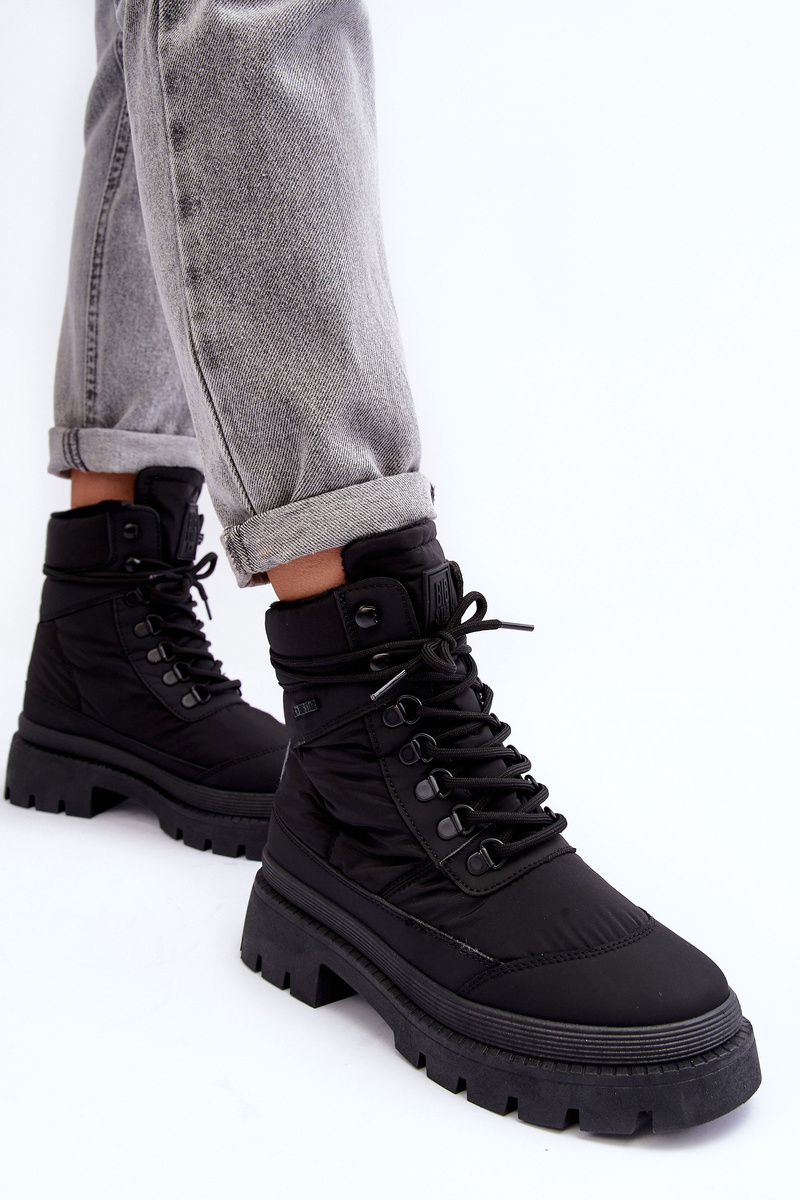 Dámske topánky - Big Star Turisk topánky sú vyrobené z kombinácie ekologickej kože a textilného materiálu. Miešené v plochej päte a masívnej podrážke. Model s klasickým šnurovaním. Agent izoloval hrubú obuvovú prikrývku. Zaoblené prsty na nohách. Pri výbere veľkosti navrhnite tabuľku veľkosti.