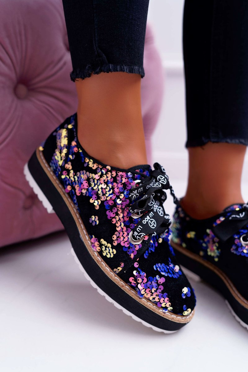 Originálny zásah od Lu Boo! Mimoriadne pohodlné, dámske topánky v šialenej verzii. Sú úplne pokryté krásne trblietavými flitrami, ktoré od nich vyvolávajú oči. Okrem toho sú priviazané k stuhám s logom Lu Boo Brand Logo. Tieto topánky vyzerajú nielen krásne, ale sú rovnako pohodlné. Pri výbere veľkosti navrhnite tabuľku veľkosti, ktorá je k dispozícii po vznášaní alebo kliknutí na danú veľkosť.