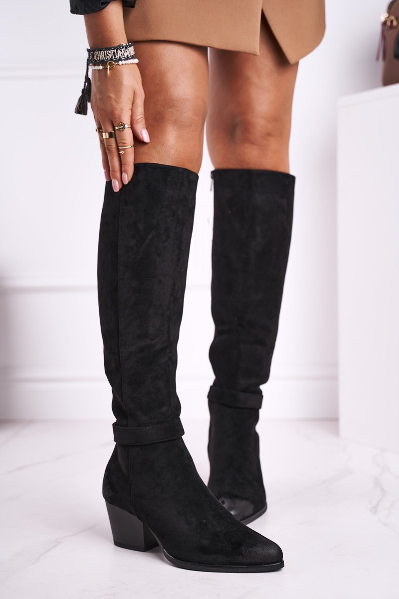 Jesenné a zimné štylizácie nemusia byť nudné. Nezabudnite sa pozrieť na tieto úžasné topánky. Krásna čierna farba v kombinácii so semišovým materiálom vyzerá jednoducho úžasne! Zdobenie pásom okolo členku ich odlišuje od ostatných kozákov. Jemný príspevok zdvihne a odhalí vašu postavu. Uvedenie uľahčí posuvný posúvač na boku. Topánky, ktoré musíte mať. Pri výbere veľkosti nasmerujte tabuľku veľkosti.