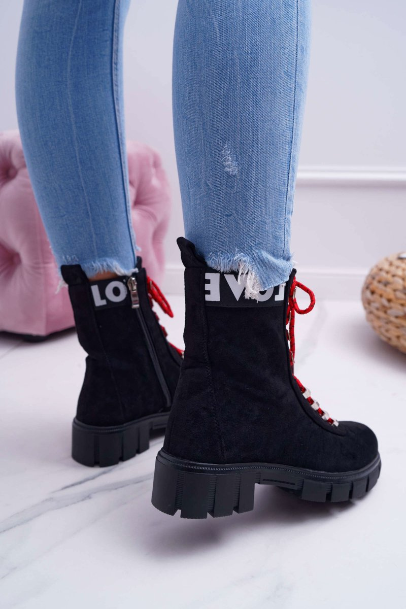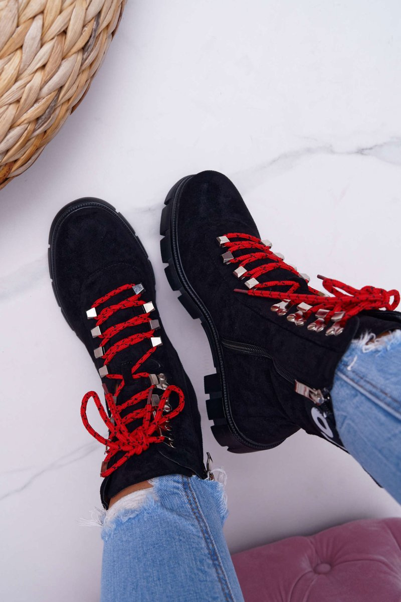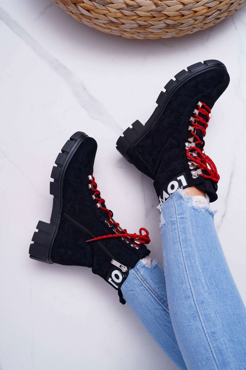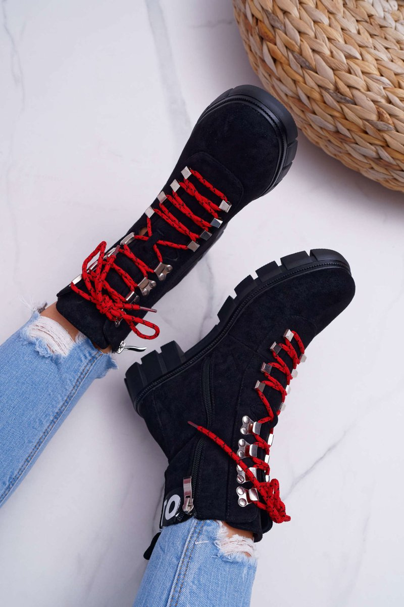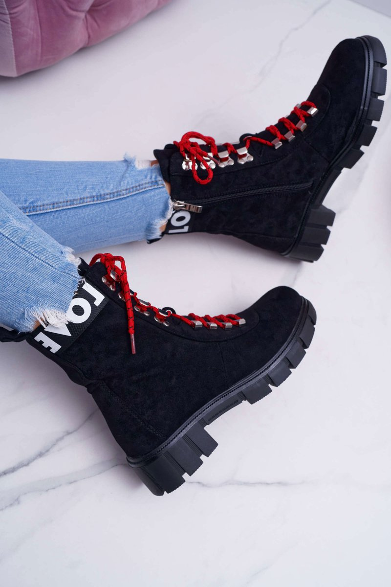 Boots sa stali neoddeliteľným prvkom jesenných a zimných štylizovaní. Jedným z trendov tejto sezóny budú tieto nádherné turistické topánky na hrubej plochej päte. Horná je ekologická časť v klasickej čiernej farbe. Interiér je pokrytý krátkou prikrývkou s krátkymi štetinami, ktorá nám poskytne pohodlie v každej situácii. Pri výbere veľkosti navrhnite tabuľku veľkosti, ktorá je k dispozícii po vznášaní alebo kliknutí na danú veľkosť.