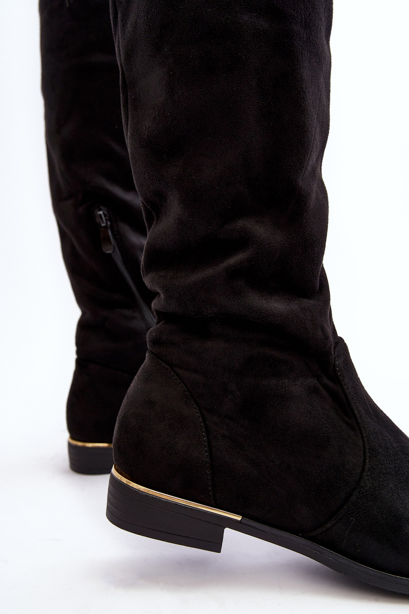 Dámske topánky na kolenách s plochými podpätkami čierne bik