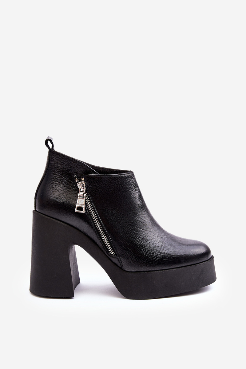 Dámske topánky s masívnou pätou vo forme vysokého stĺpu. Vyrobené z prírodnej kože. Členok zvršok. Pripevnený zipsom zvonku. Agent izoloval prikrývku topánky. Zaoblené prsty na nohách. Tieto topánky sú ideálne pre jesenné štylizácie. Pri výbere veľkosti postupujte podľa tabuľky veľkosti