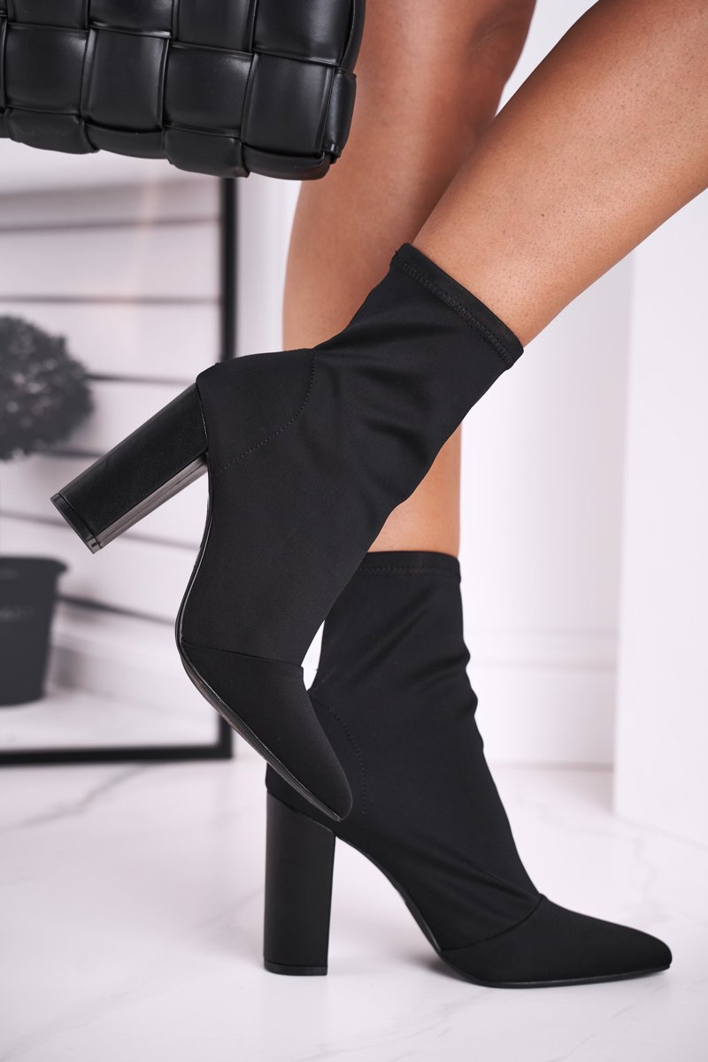 Čierne topánky vyrobené z materiálu Lycra s nosom v Spitz. Elastický horný sa prispôsobuje chodidle, vďaka čomu je mimoriadne pohodlný. Zabudovaný na stabilný stĺp. Pri výbere veľkosti navrhnite tabuľku veľkosti.