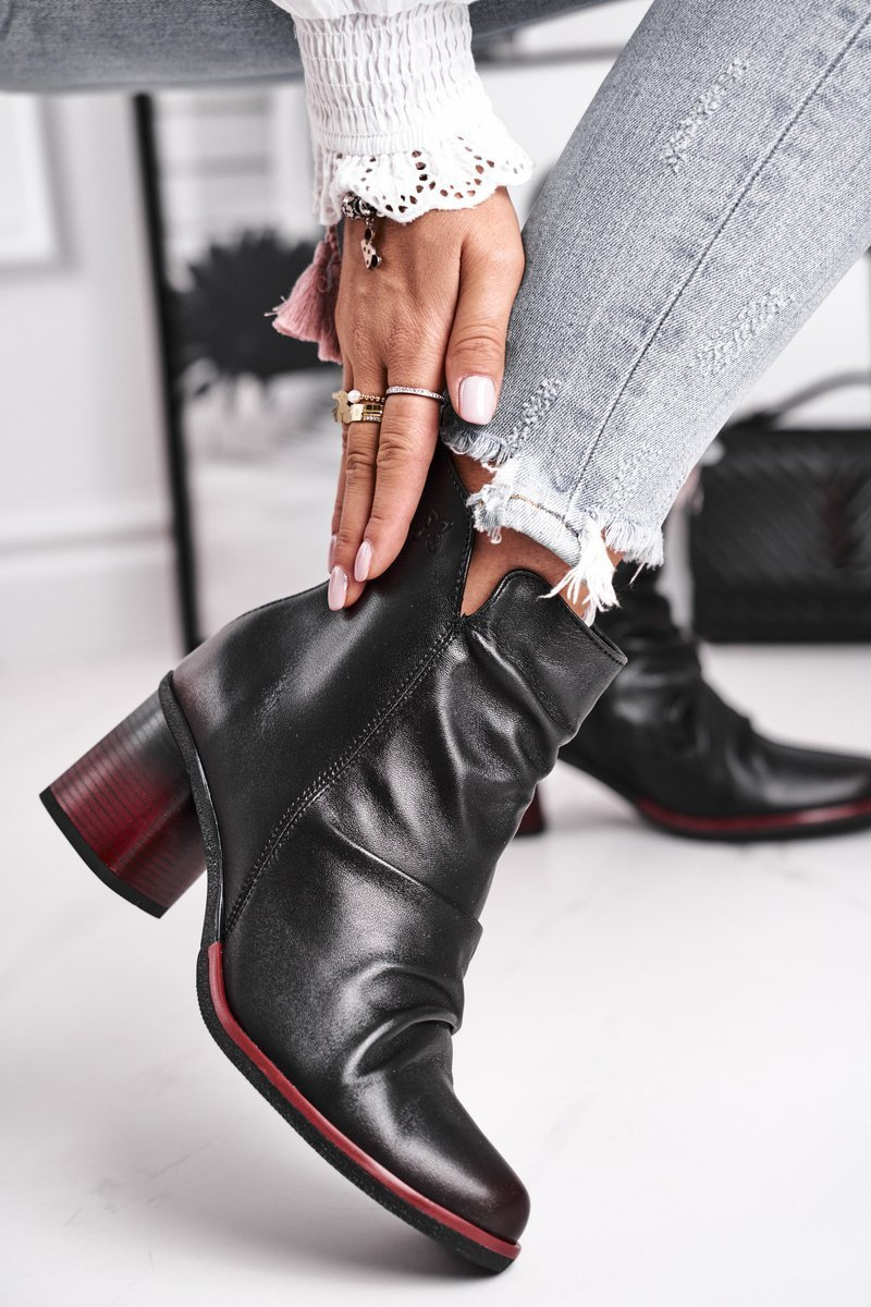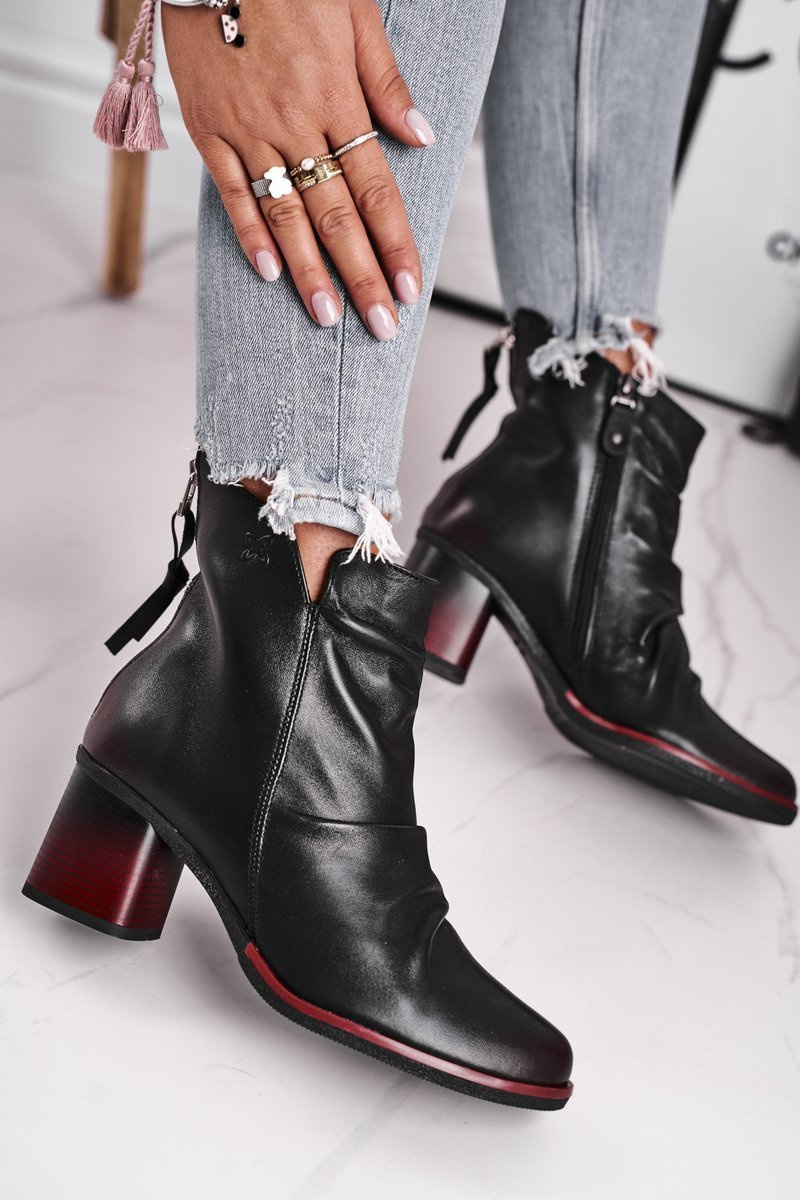 Čierne topánky nemusia byť nudné! Topánky spoločnosti Maciejk sú dokonalým potvrdením. Model úplne vyrobený z prírodnej kože v kombinácii s červenou pätou vyzerá úžasne! Horná jemne rozdrvená ďalším dekoratívnym posúvačom. Tešíte ostatných svojimi štylizáciami a určte trendy tejto sezóny! Zipper vo vnútri uľahčí obliekanie. Pri výbere veľkosti navrhnite tabuľku veľkosti.