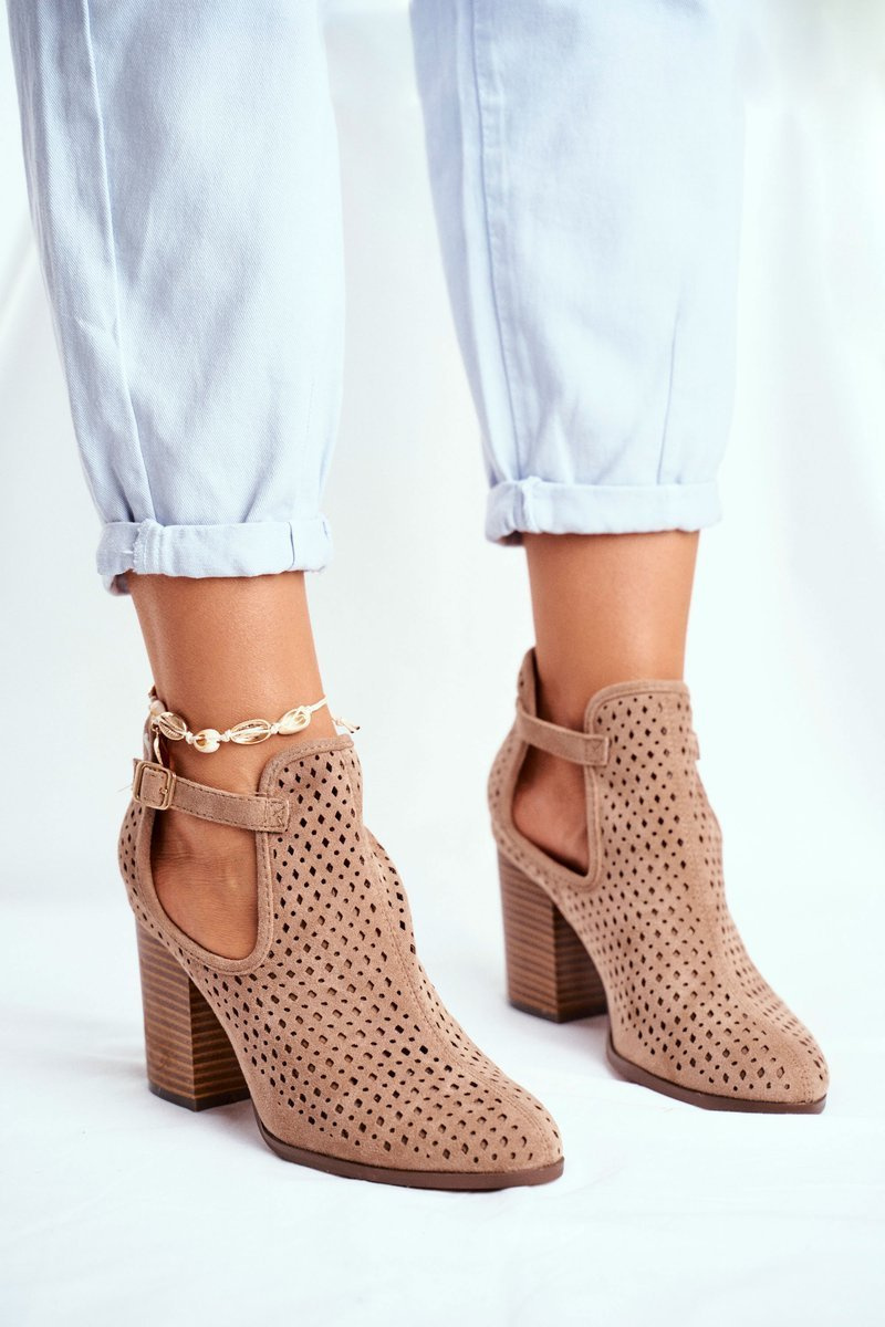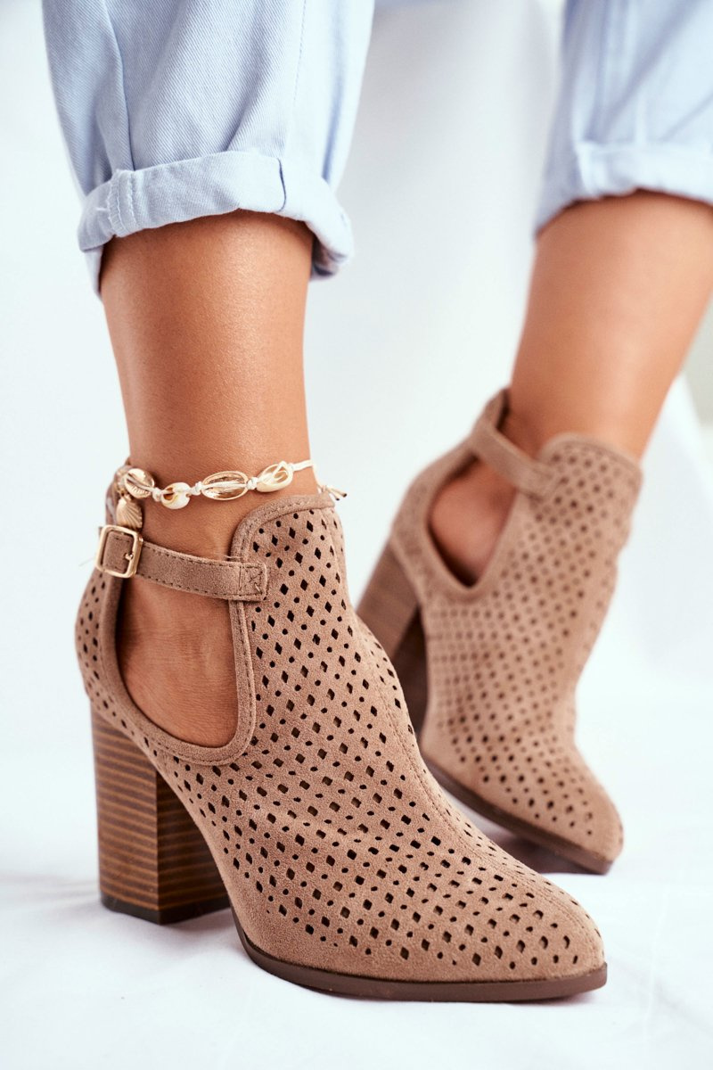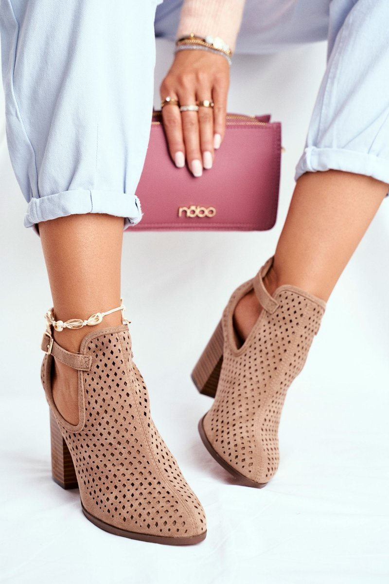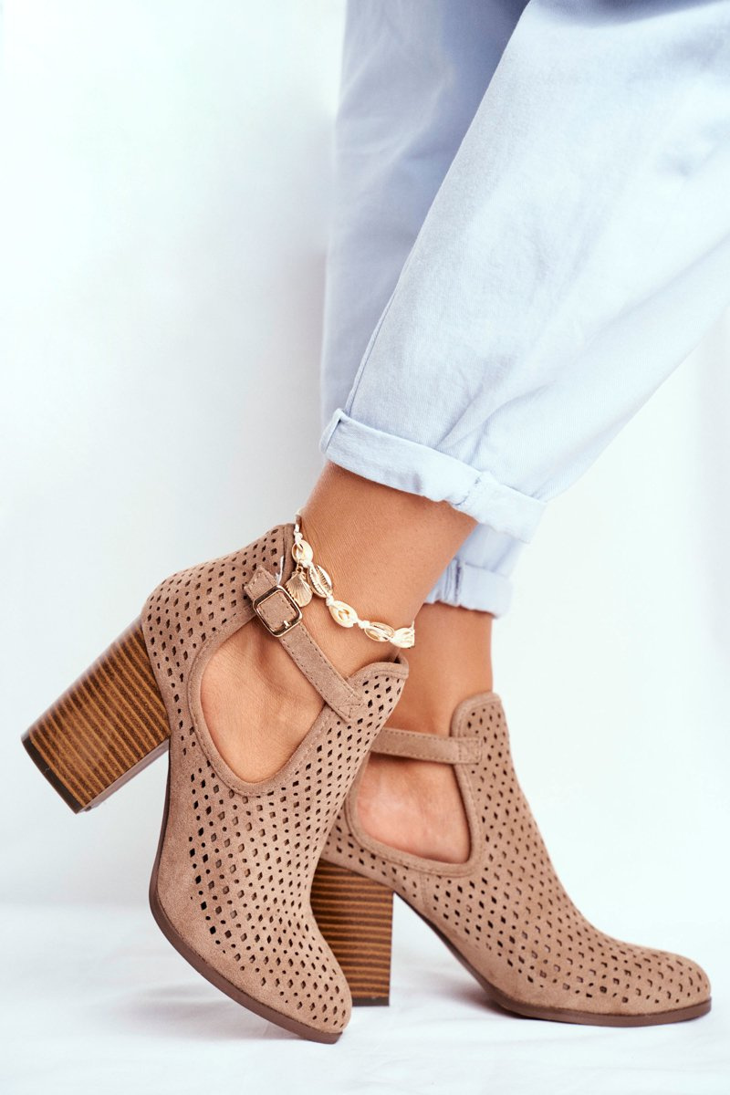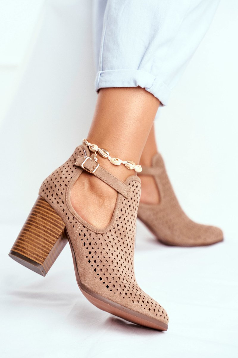 Dámske topánky na stĺpe semišovej otvorenej béžovej Morrena