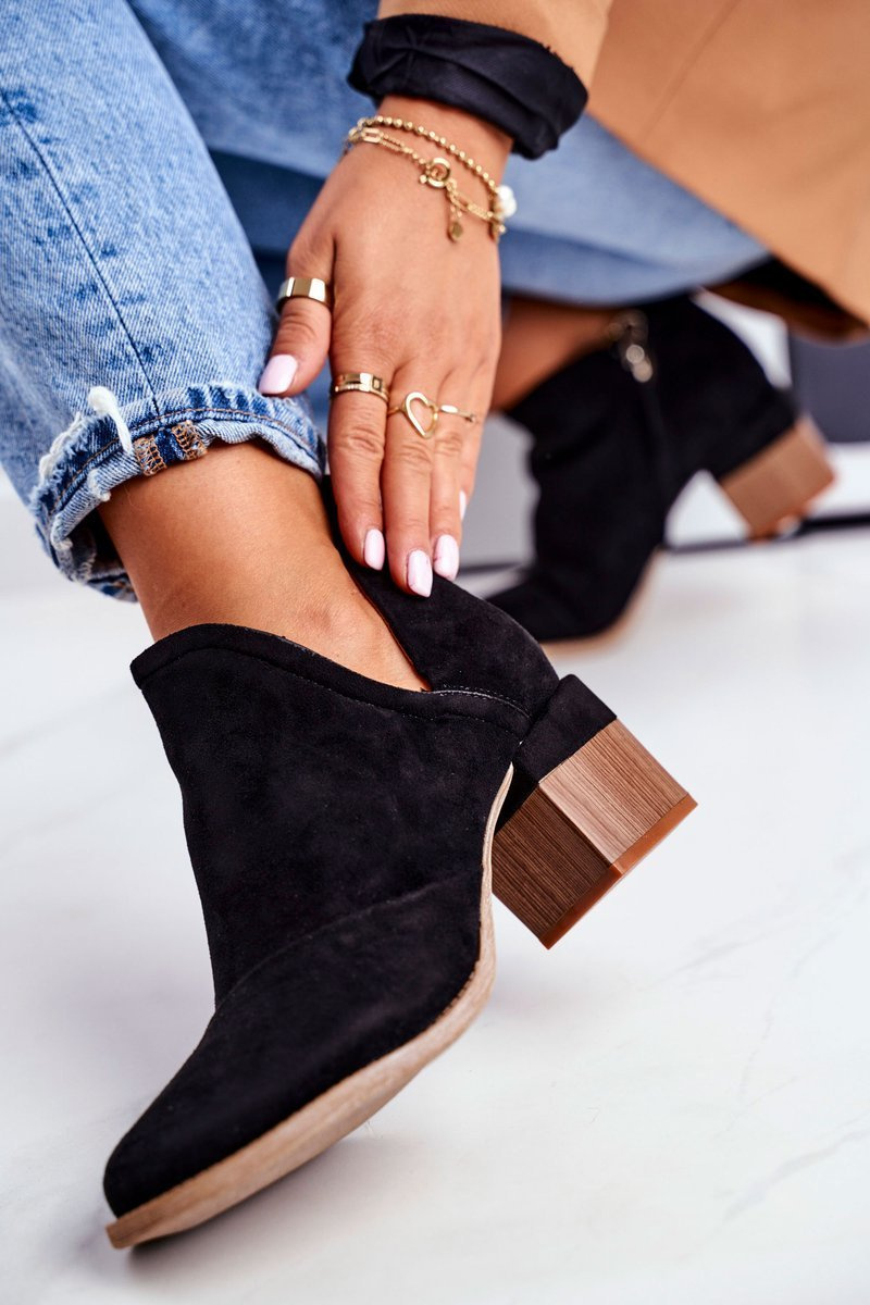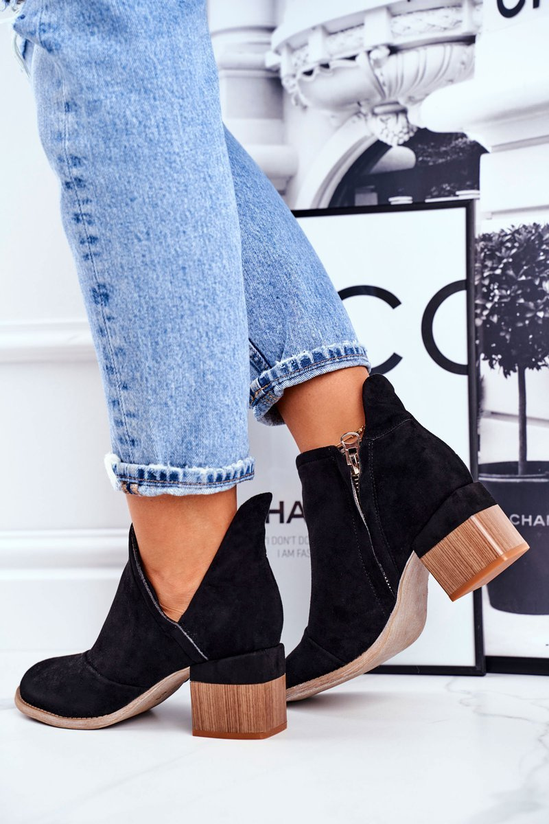 Boots sú jednou z najuniverzálnejších a dámskych topánok. Tento model bude nepochybne jedným z vašich obľúbených! To všetko vďaka masívnej päte vo forme bloku, ktorý vám umožní nosiť vysoké topánky, udržiavať stabilitu a pohodlie použitia v 100%. Slipland povrchy nebudú od dnešného dňa strašidelné! Vyvýšená päta a vystrihnutá vonkajšia strana topánky vytvára geometrickú harmóniu a robí obuv veľmi elegantnou. Táto tvarová forma dokonale vytlačí vašu nohu a budete sa cítiť ešte krajšie! Ak je to možné :) Pri výbere veľkosti, navrhnite tabuľku veľkosti.