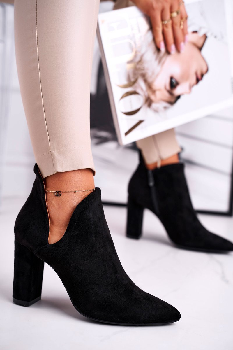 Boots sú jednou z najuniverzálnejších a dámskych topánok. Tento model bude nepochybne jedným z vašich obľúbených! To všetko vďaka použitiu klasického strihu a širšieho príspevku, ktorý vám umožní nosiť vysoké topánky, udržiavať stabilitu a pohodlie použitia v 100%. Vyvýšená päta a vystrihnutá vonkajšia strana topánky vytvára geometrickú harmóniu a robí obuv veľmi elegantnou. Táto tvarová forma dokonale vytlačí vašu nohu a budete sa cítiť ešte krajšie! Ak je to možné :) Pri výbere veľkosti, navrhnite tabuľku veľkosti.
