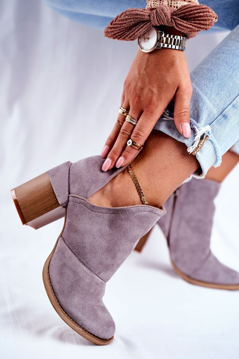 Boots sú jednou z najuniverzálnejších a dámskych topánok. Tento model bude nepochybne jedným z vašich obľúbených! To všetko vďaka masívnej päte vo forme bloku, ktorý vám umožní nosiť vysoké topánky, udržiavať stabilitu a pohodlie použitia v 100%. Slipland povrchy nebudú od dnešného dňa strašidelné! Vyvýšená päta a vystrihnutá vonkajšia strana topánky vytvára geometrickú harmóniu a robí obuv veľmi elegantnou. Táto tvarová forma dokonale vytlačí vašu nohu a budete sa cítiť ešte krajšie! Ak je to možné :) Pri výbere veľkosti, navrhnite tabuľku veľkosti.
