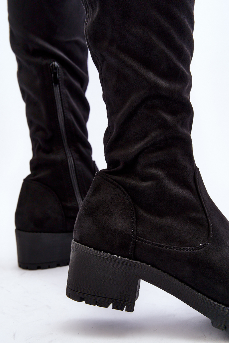 Dámske topánky s zvrškom kolena. Vyrobené z ekologického semišu. Nastavenie na nízkych podpätkoch. Model vložený s ďalším upevňovačom PSIP. Zaoblené prsty na nohách. Sú skvelé na krátke sukne alebo šaty. Tieto topánky musia byť vaše! Pri výbere veľkosti navrhnite tabuľku veľkosti.