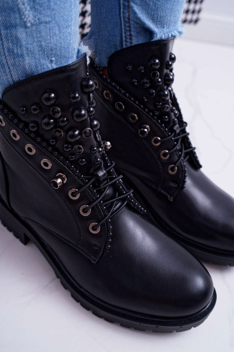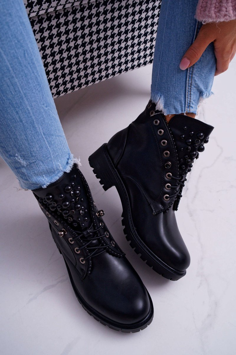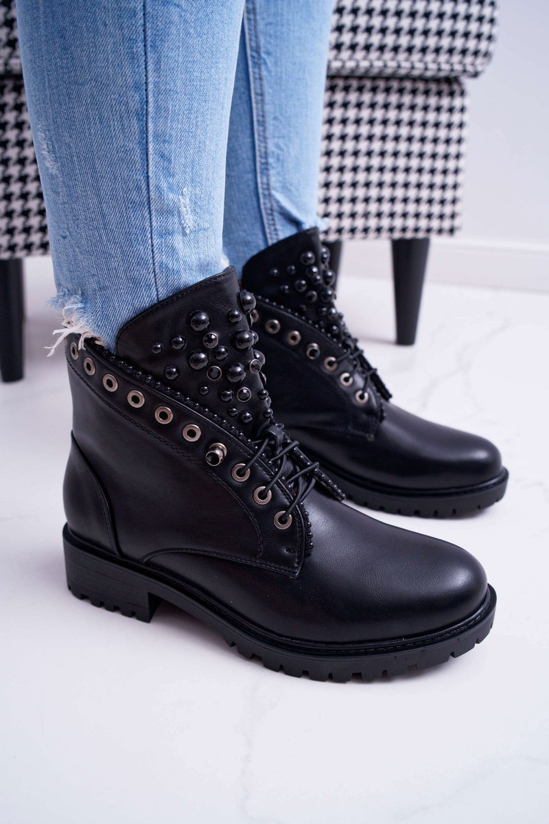 Nemysli na to, čo sa má nosiť v chladný deň, stačí skontrolovať našu skvelú ponuku topánok. Prezentovaný model pochádza z najnovšej zbierky a kombinuje všetko, čo potrebujeme. Teplý interiér pokrytý obuvou prikrývkou a dekoratívnymi perlami na jazyku. Záruka pohodlia v každej situácii. Použitá ekologická koža zŕn je najlepšou voľbou pre jesenné počasie. Pri výbere veľkosti navrhnite tabuľku veľkosti.