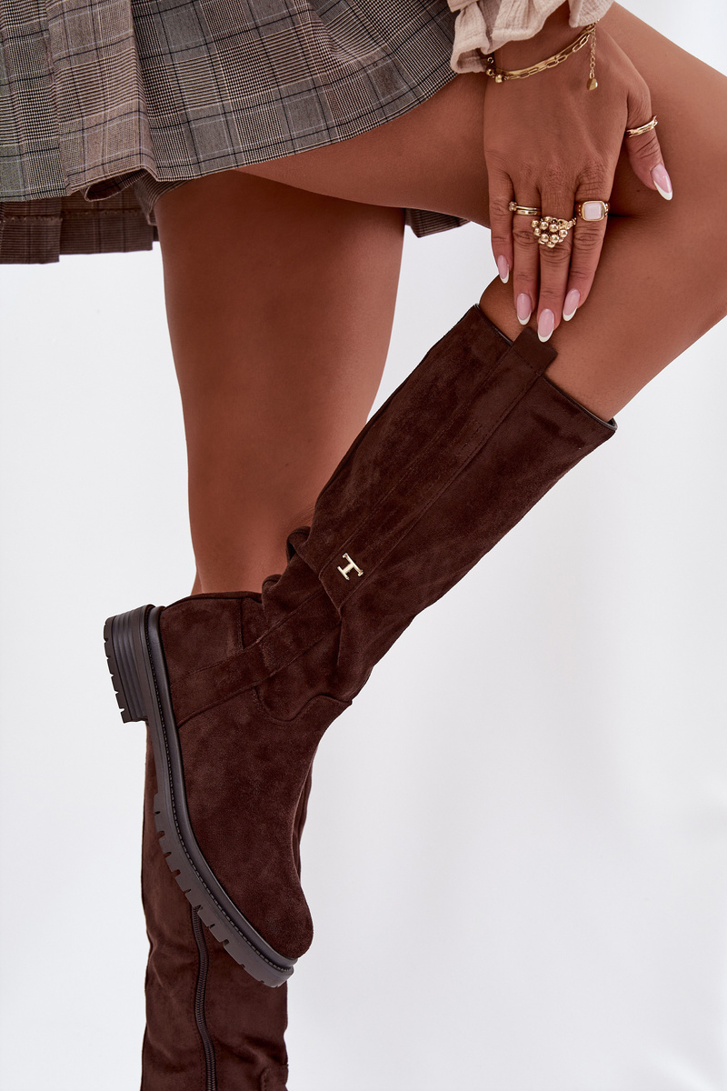 Dámske čižmy na nízkom podpätku sú praktickou a štýlovou voľbou na zimné dni. Model so zipsom umožňuje rýchle obúvanie a vnútro vyplnené mäkkou dekou na obuv zabezpečuje teplo a pohodlie aj v najchladnejších dňoch. Jemný, zlatý detail v tvare písmena „T“, umiestnený na boku holene, pridáva jemný, elegantný akcent, vďaka čomu sú čižmy ideálne pre každodenné zimné štýly. Pri výbere veľkosti sa riaďte tabuľkou veľkostí. Při výběru velikosti se řiďte tabulkou velikostí.