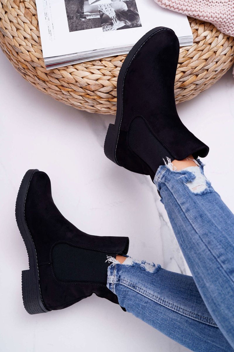 Dámske topánky semišové topánky Chelsea Black 8BT35-0585