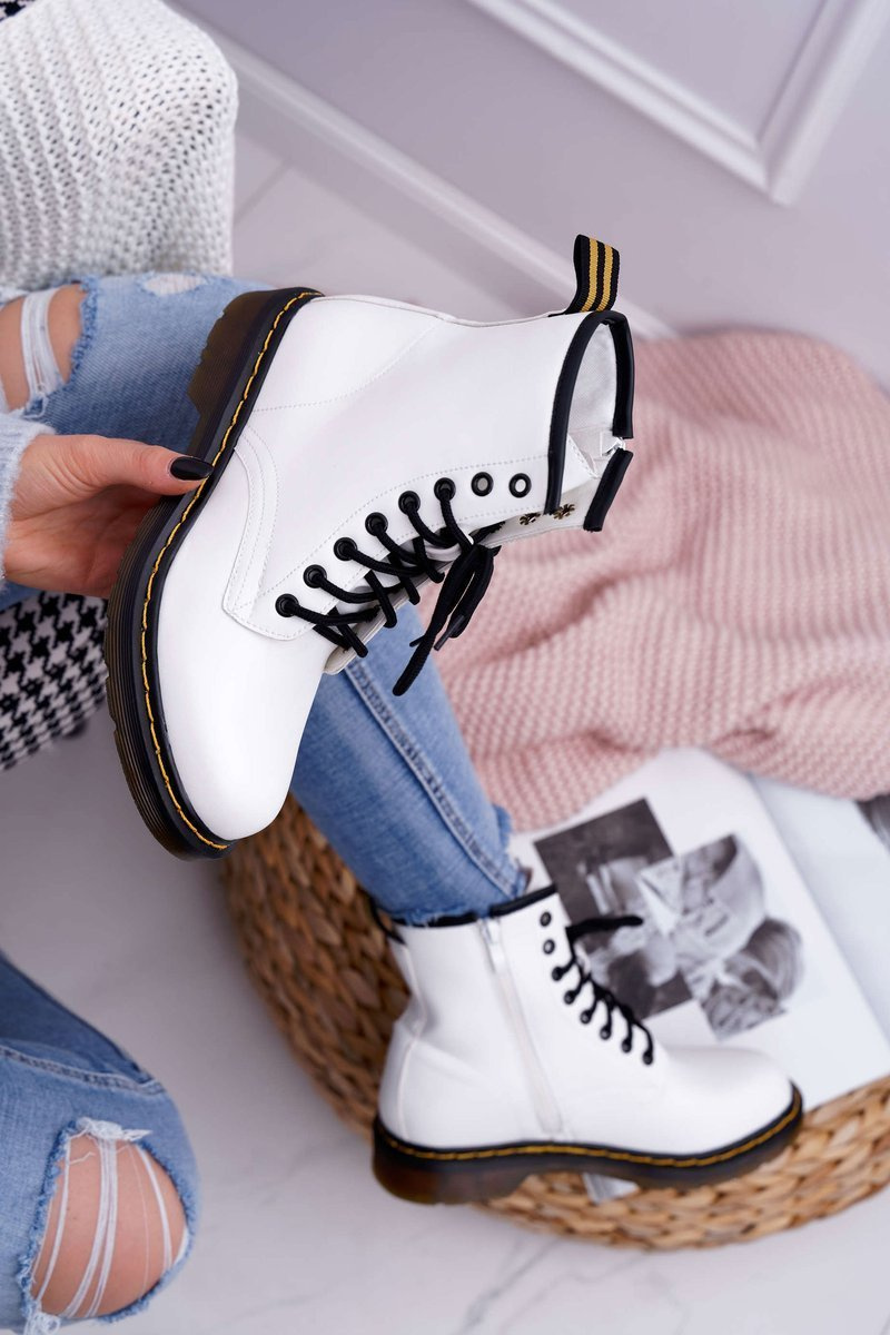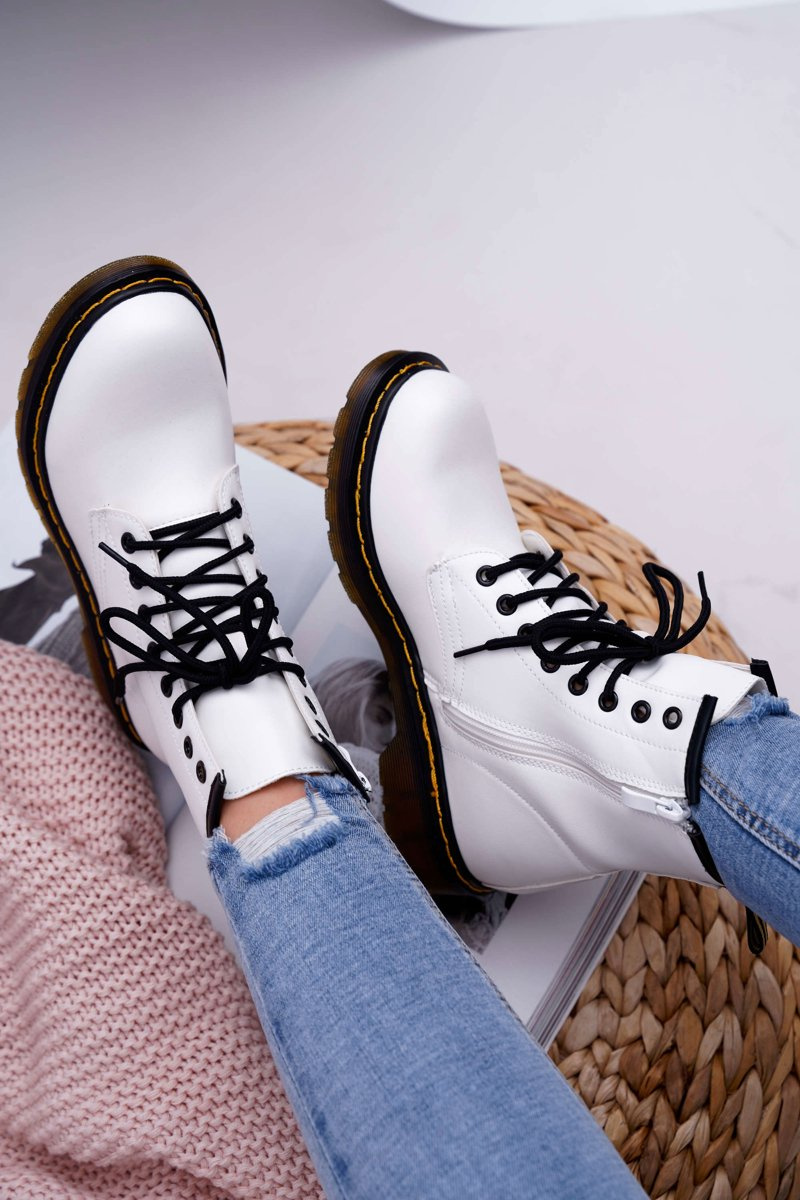 Trappers sa stali neoddeliteľným prvkom jesenných a zimných štylizácií. Jedným z trendov tejto sezóny sú tieto úžasné topánky! Vďaka hornej časti ekologickej kože, ktorá v kombinácii s módnym dizajnom spôsobuje, že vyzerajú šialene. Stabilná plochá päta a pevné šnurovanie. Tieto úžasné pasce musia byť vo vašej zbierke. Posúvač na boku uľahčí nasadenie a tiež vyzerá nádherne. Pri výbere veľkosti navrhnite tabuľku veľkosti.