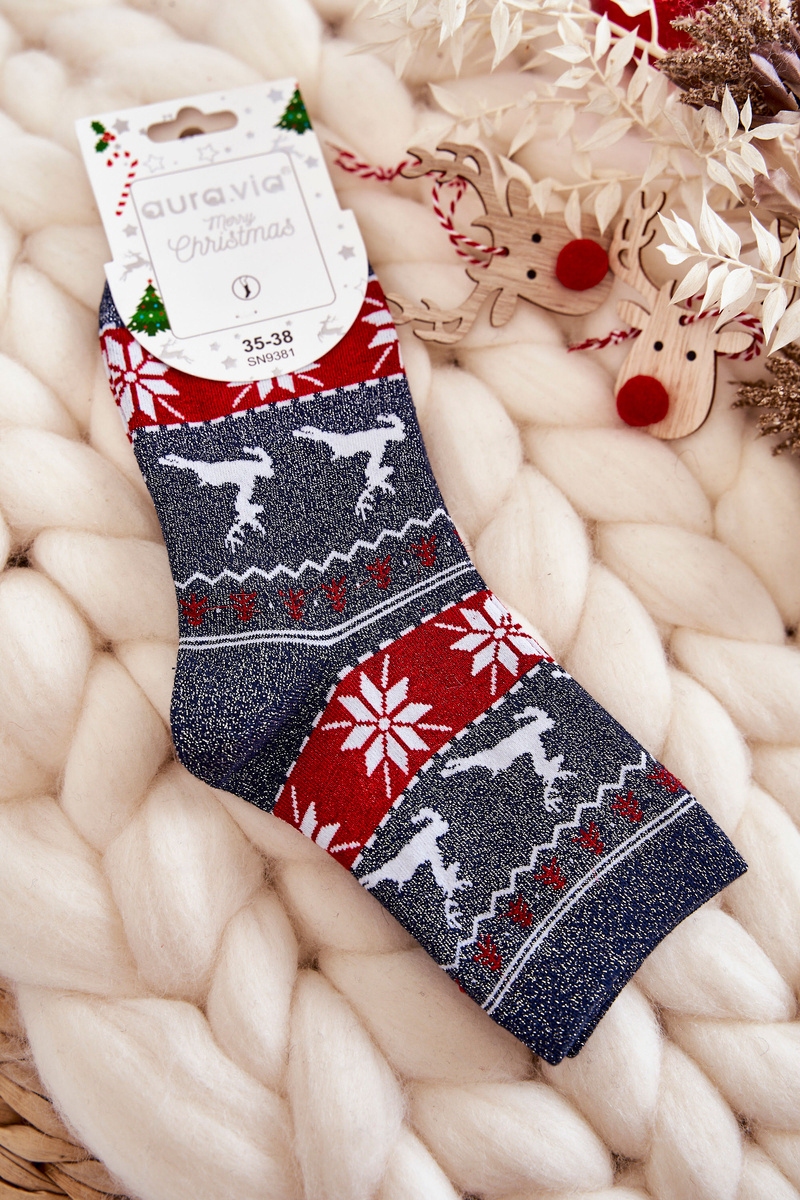 Úžasné dámske ponožky boli vyrobené z odolnej bavlnenej látky. Zdobené vianočnými vzormi a Lurexom, t. J. Metalizovaným vláknom. Ponožky majú jemný zvlnený, čo umožňuje právo prispôsobiť sa nohe nohy. Tento model je tiež skvelý ako vianočný darček!