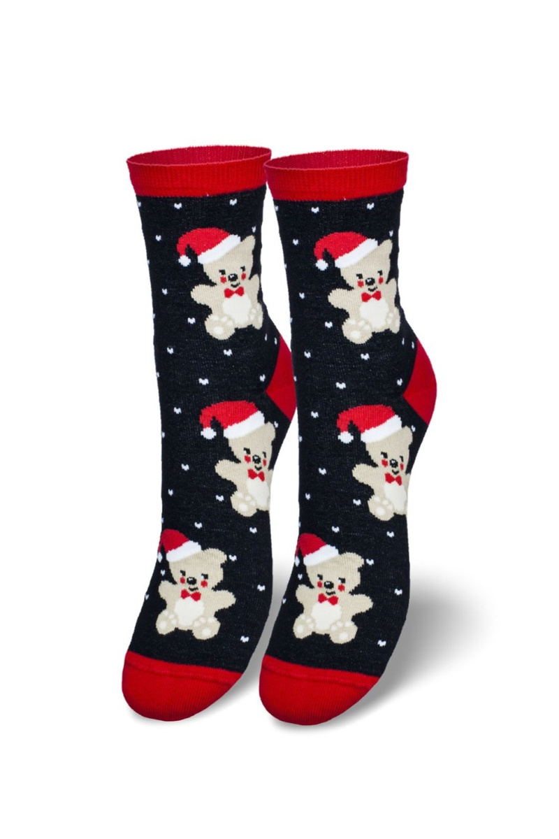 Dámske Vianočné Ponožky Medveď V Mikulášskej Čiapke Čierne
