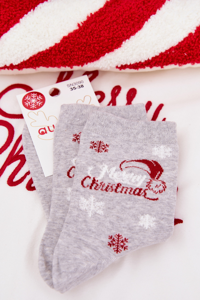 Dámske Vianočné Ponožky Snehové vločky S Nápisom Svetlosivá