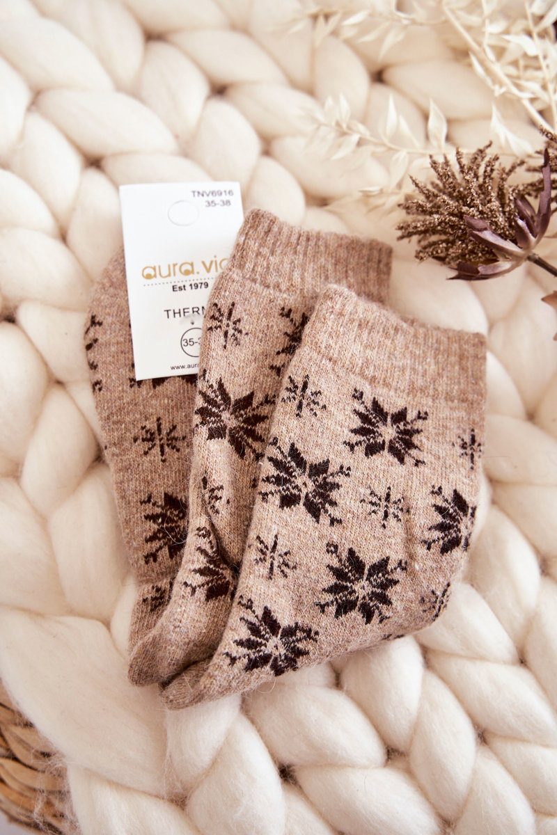Dámske vlnené ponožky v béžovej vločke Snow vločky