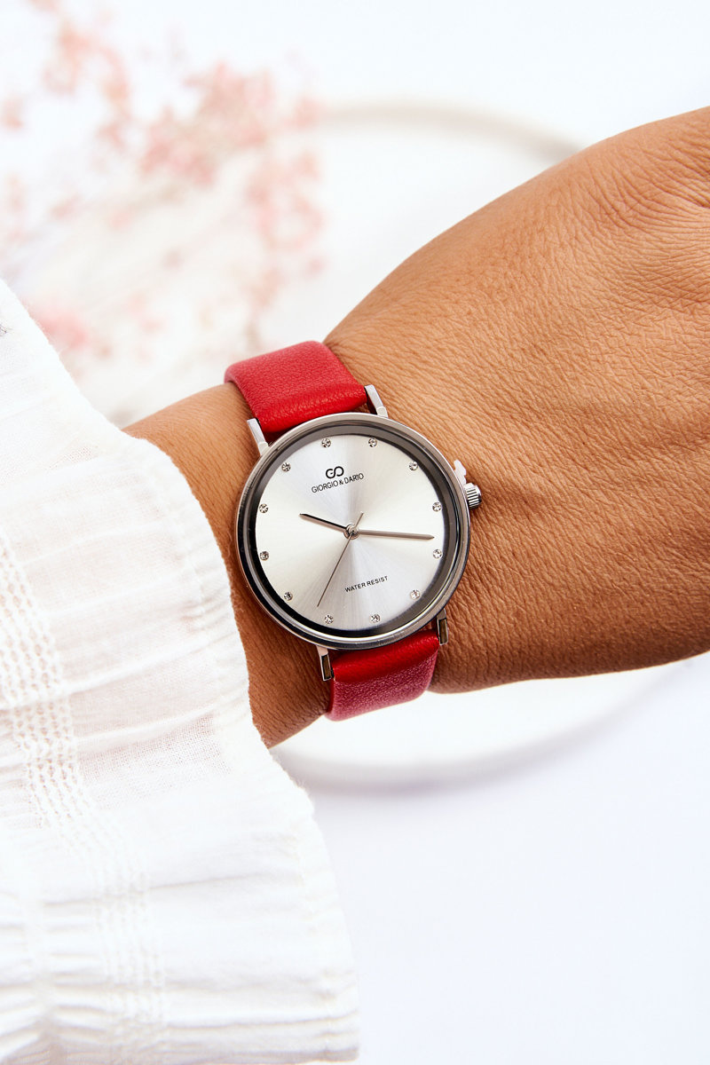 Dámske vodotesné analógové hodinky Giorgio a Dario Red-Silver
