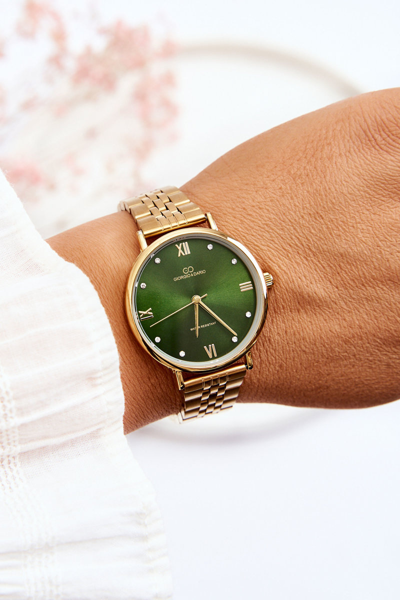 Dámske vodotesné hodinky Giorgio a Dario Złoty Green Shield