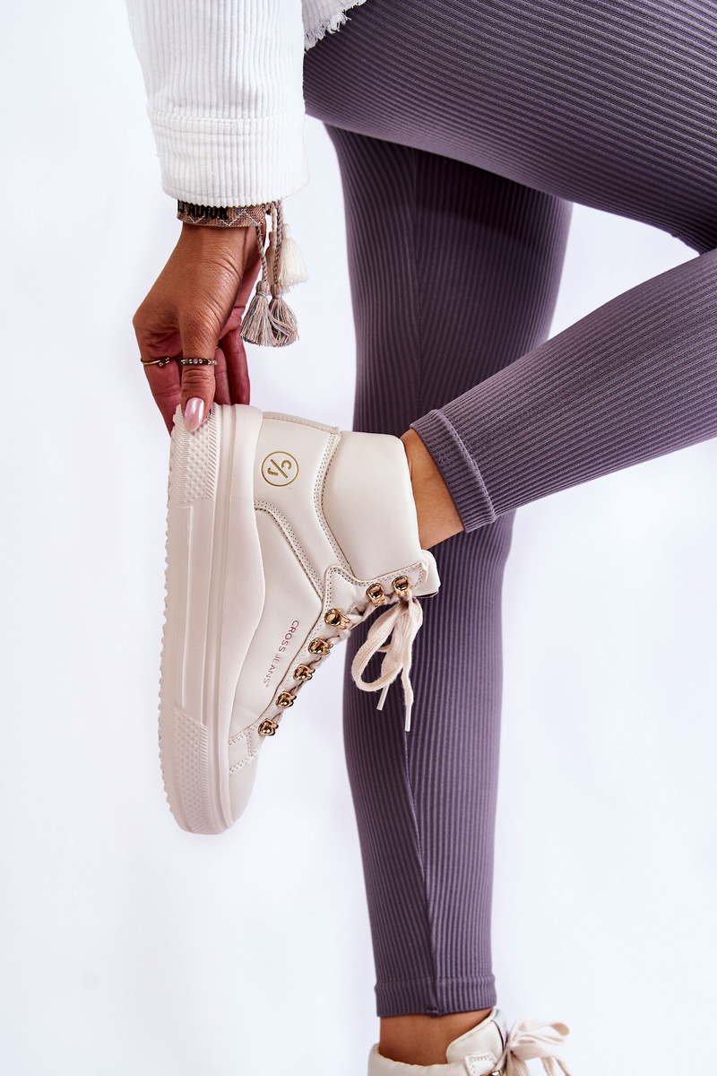 Dámske vysoké tenisky krížové džínsy KK2R4027C Beige