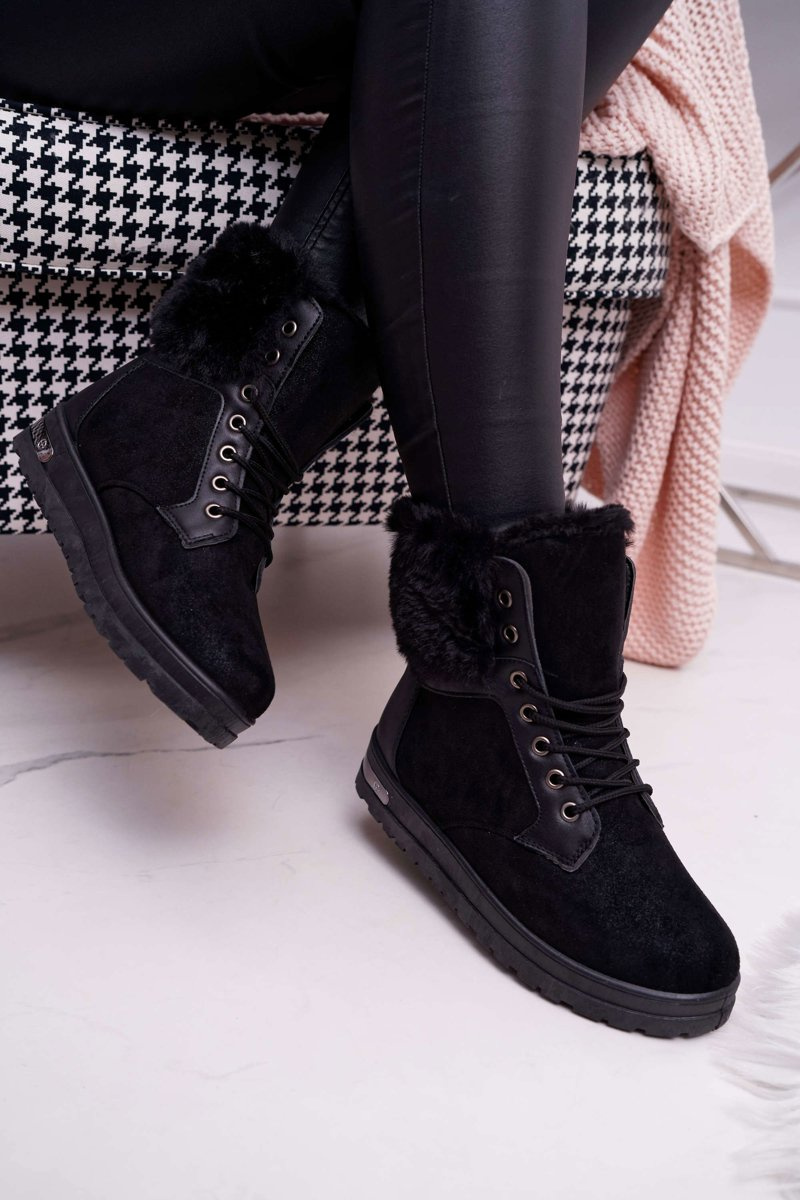 Dámske vysoké topánky s kožušinou Black Glamiso