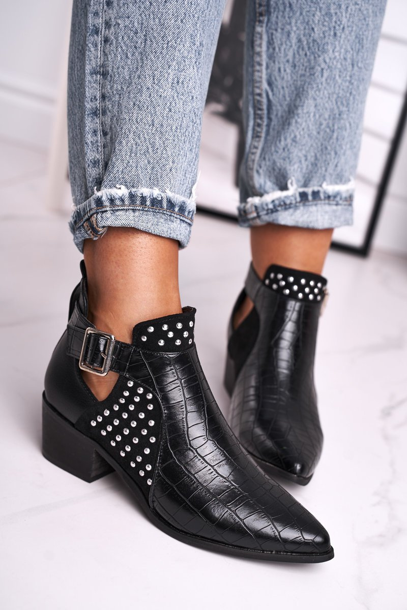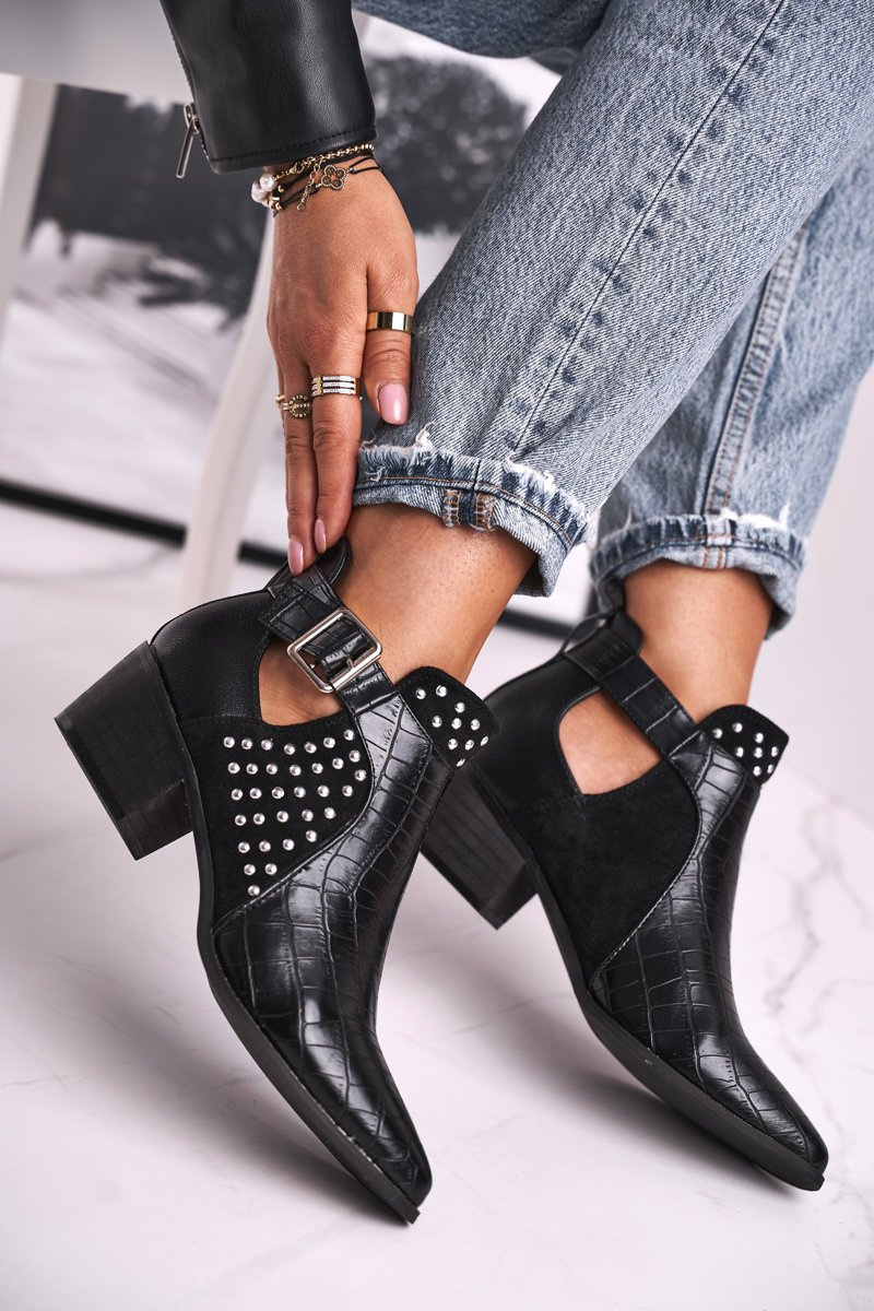 Čierne topánky v klasickej verzii s nosom v Spitz. Majú odsadenie na boku hornej časti a pracky, ktorá uľahčí obliekanie. Nastavenie na nízkej päte, ktorá zdôrazní vašu postavu. Pri výbere veľkosti navrhnite tabuľku veľkosti.