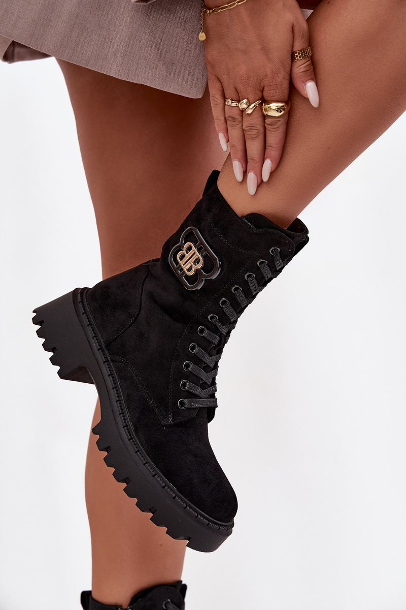 Dámske Workery Čižmy S Dekoratívnym Prvkom Zateplené Čierne Kalindra