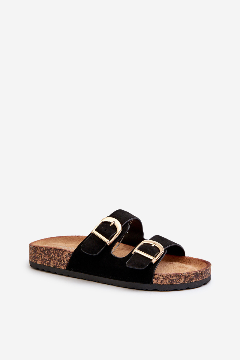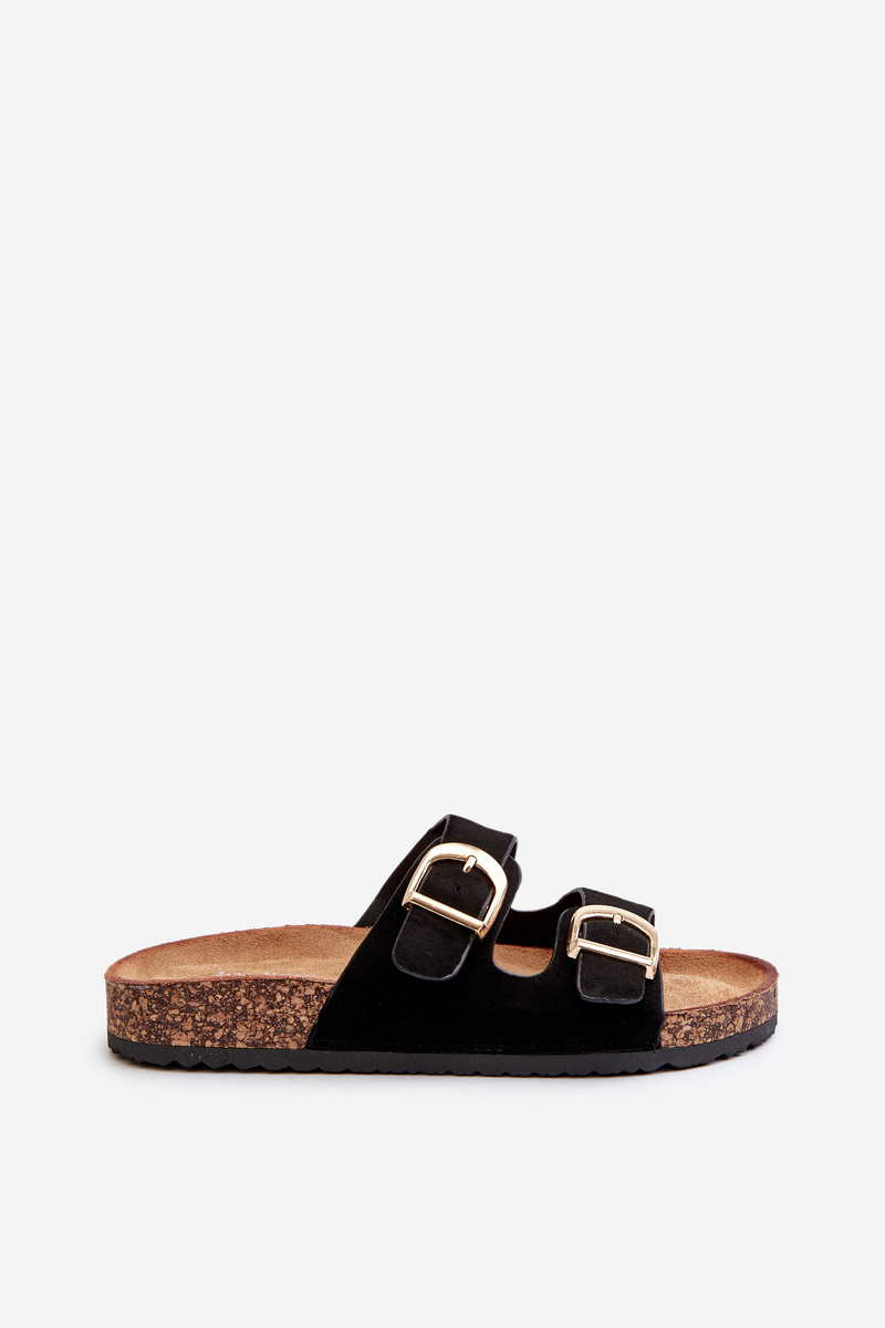 Dámske žabky na korkovej platforme s pásmi čierne Doretta
