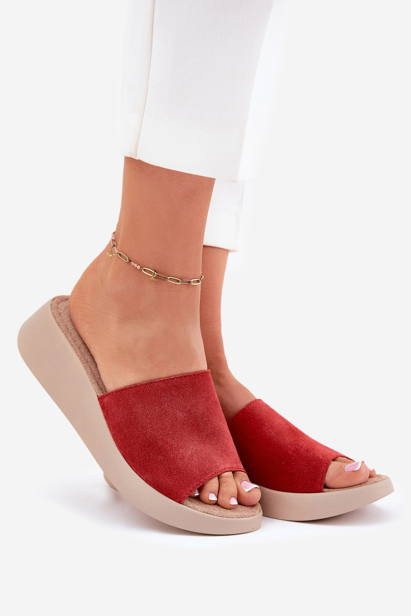 Dámske Zamatové Sandále Na Klíne Panto Fino Červené RR267040