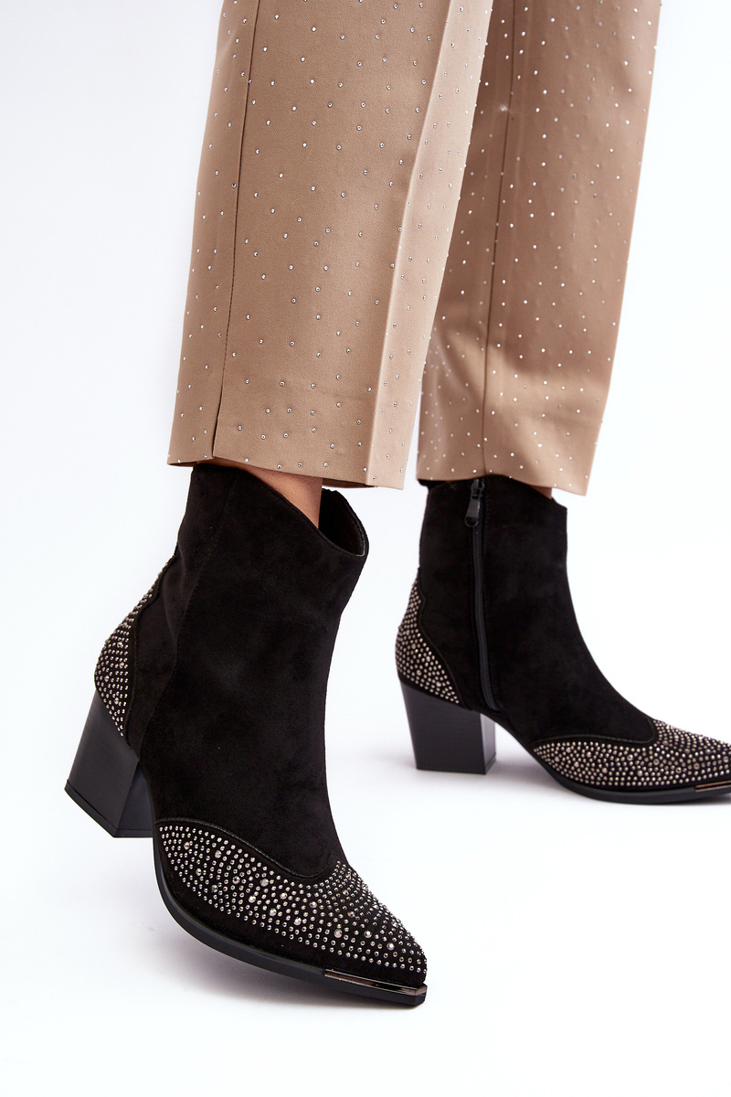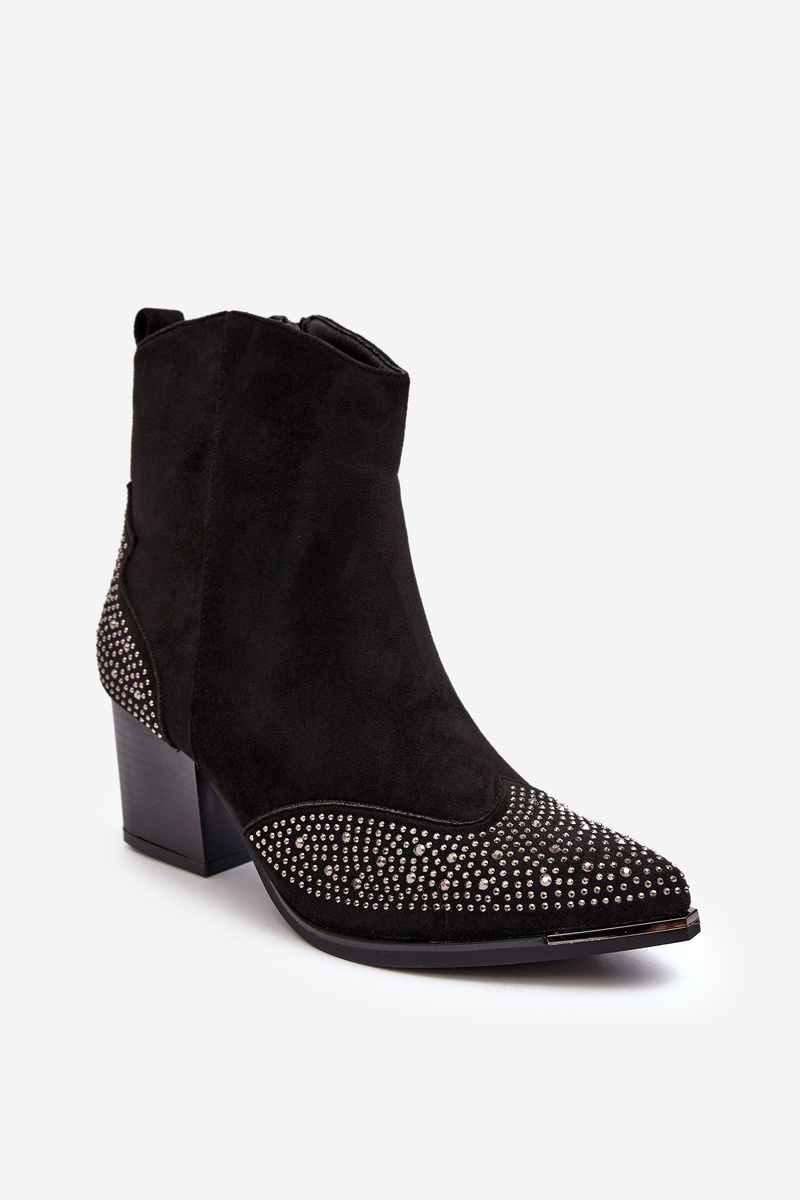 Dámske zdobené kovbojské topánky na čiernom post eleguana