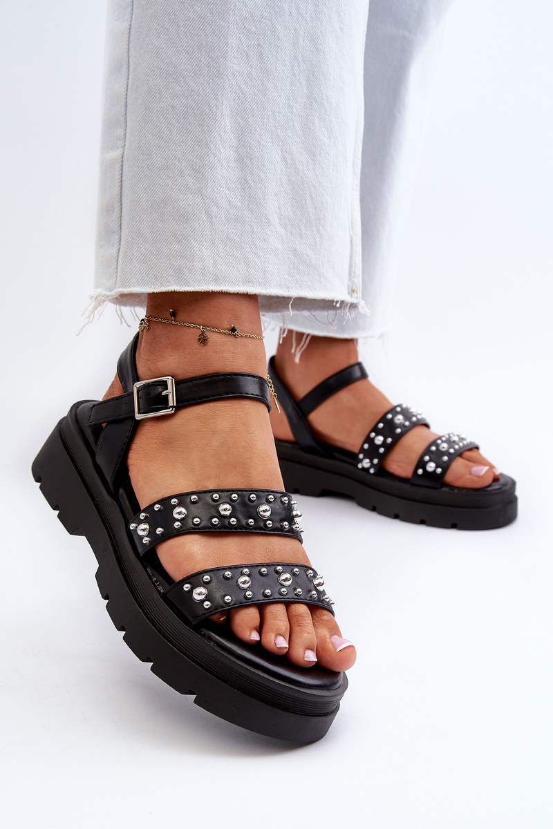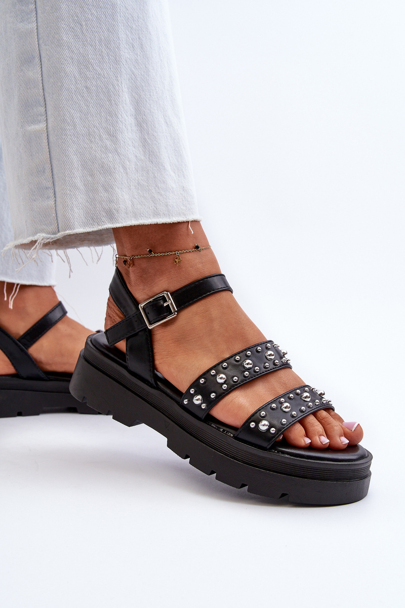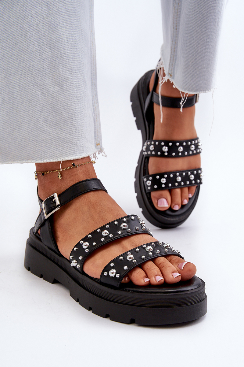 Dámske zdobené sandále eko kože čierne Arcida