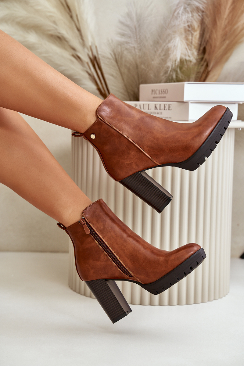 Dámske zimné topánky na vysokom opätku so zipsom Camel Bioria