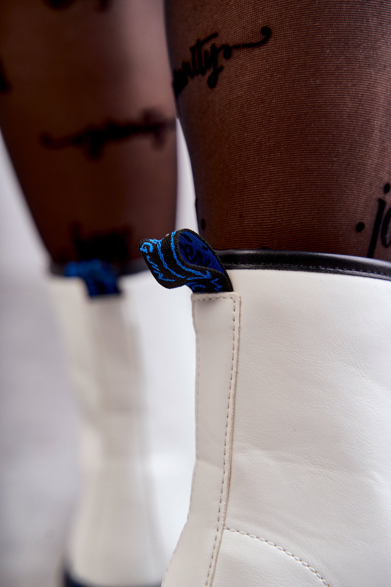 Unikátne dámske topánky majú klasickú väzbu pre okrúhle šnúrky a posúvač na uľahčenie inštalácie obuvi. Majú jemné šitie na zvršku. Vyrobené z ekologickej kože. Studivená päta zabezpečí stabilizáciu chodidla. Čižmy sú umiestnené na plochej, masívnej päte a plošine, ktorá je navyše orezaná niťou. Pri výbere veľkosti navrhnite tabuľku veľkosti.