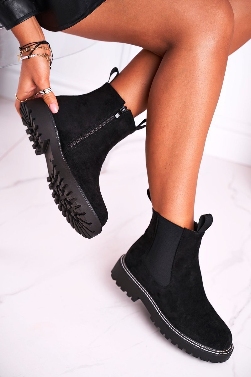 Svet módy je neustále na hlave, aby nás prekvapil. Takže sa pozrite na tieto krásne topánky s strihom dýky! Je úplne vyrobený z ekologického semišu, vo vnútri izolovanej prikrývkou obuvi s krátkymi štetinami, takže sa nemusíte starať o teplo v chladených dňoch. Vysoký zvršok s elastickou je zárukou dokonalého záchvatu a posúvač na vnútornej strane zvršku nám poskytne rýchle nasadenie. Pri výbere veľkosti navrhnite tabuľku veľkosti.