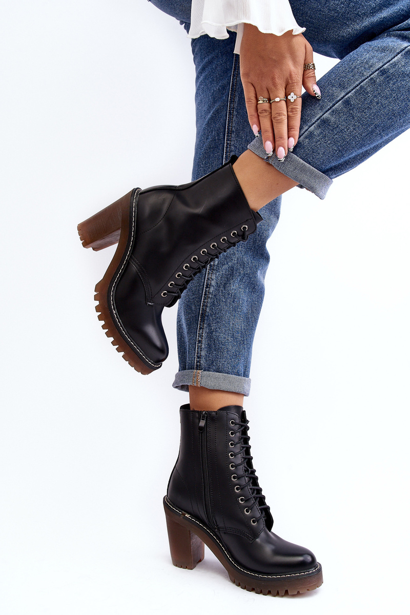 Dámske topánky vyrobené z ekologickej kože. Podpätky zabudované vo forme príspevku. Členok zvršok. Model pripevnený posúvačom na boku a navyše má šnurovanie. Zložka izolovaná prikrývkou obuvi. Zaoblené prsty na nohách. Stuhnutá päta. Pri výbere veľkosti navrhnite tabuľku veľkosti.