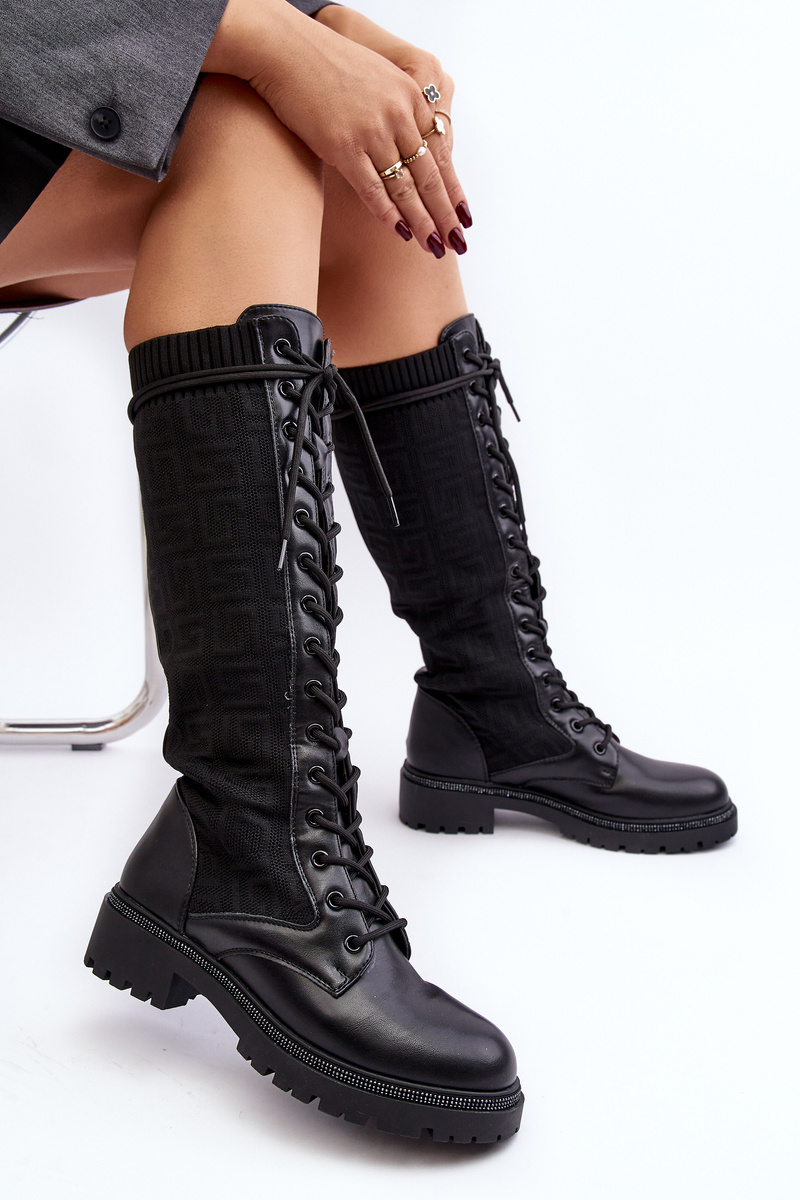Dámske topánky vyrobené z kombinácie ekologickej kože a textilného materiálu. Ploché vložené. Zaoblené prsty na nohách. Zvršok pred kolenom vo forme ponožky. Tento model bude ideálny pre mnoho jesenných štylistov! Musíte ich mať! Pri výbere veľkosti nasmerujte tabuľku veľkosti. P>