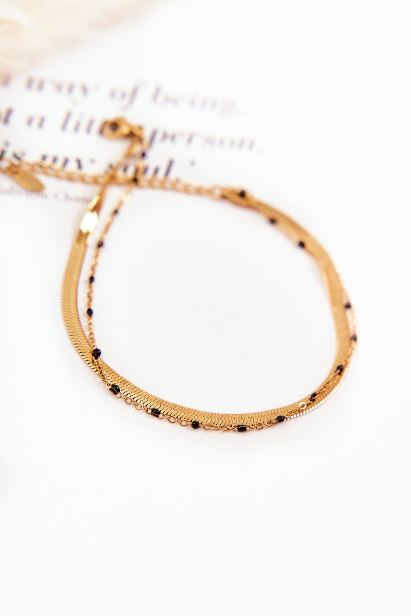Krásny náramok s dvojitou nohou bol vyrobený z nehrdzavejúcej ocele. Má jednu tenkú reťaz s malými korálkami a reťaz żmijka. Náramok má schopnosť upraviť dĺžku. Na nohe to bude vyzerať skvele. Má klasickú sponu. Náramok nemá nikel. Mali by ste to mať vo svojej zbierke náramkov!