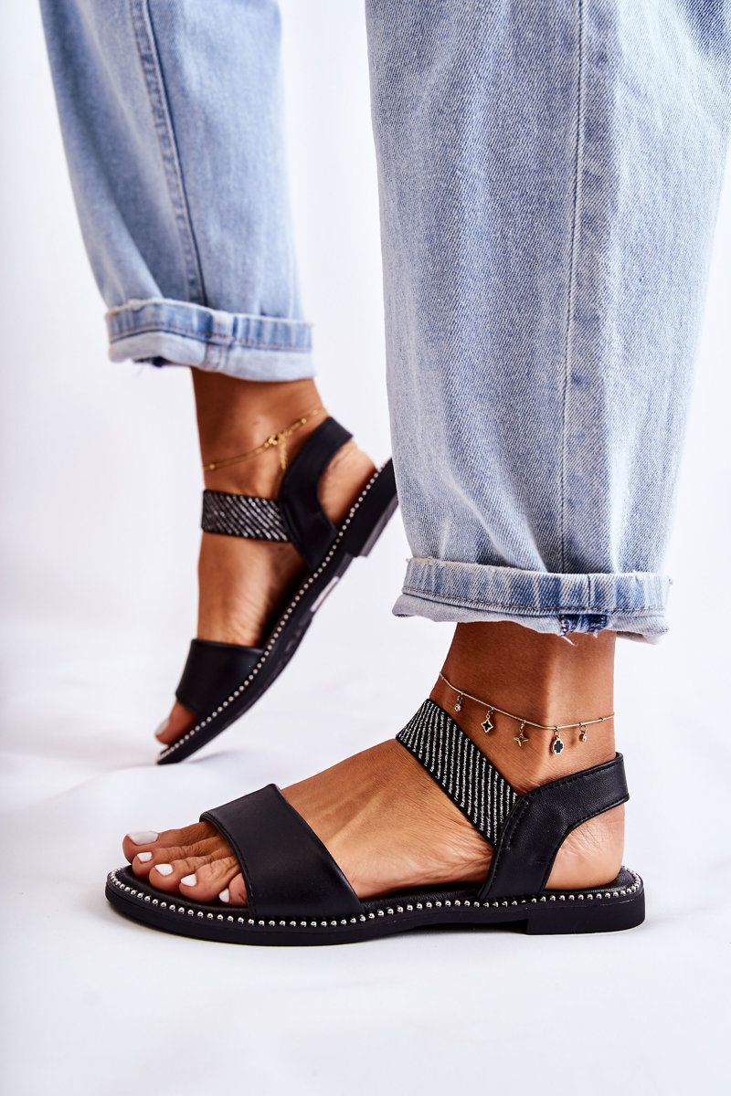 Perfektné sandále pre horúce dni! Klasický, sklzový model. Topánky vyrobené z ekologickej kože. Okrem toho majú zverenie, vďaka ktorej sa topánky správne prispôsobia úseku nohy. Vložka je mäkká a pohodlná na použitie. Ploché topánky, s podrážkami, ktoré nie sú podrážkami. Okrem toho sú sandále zdobené kamienkami. Nos objavený, zaoblený. Sú skvelé počas každodenného používania. Pri výbere veľkosti postupujte podľa tabuľky veľkosti.