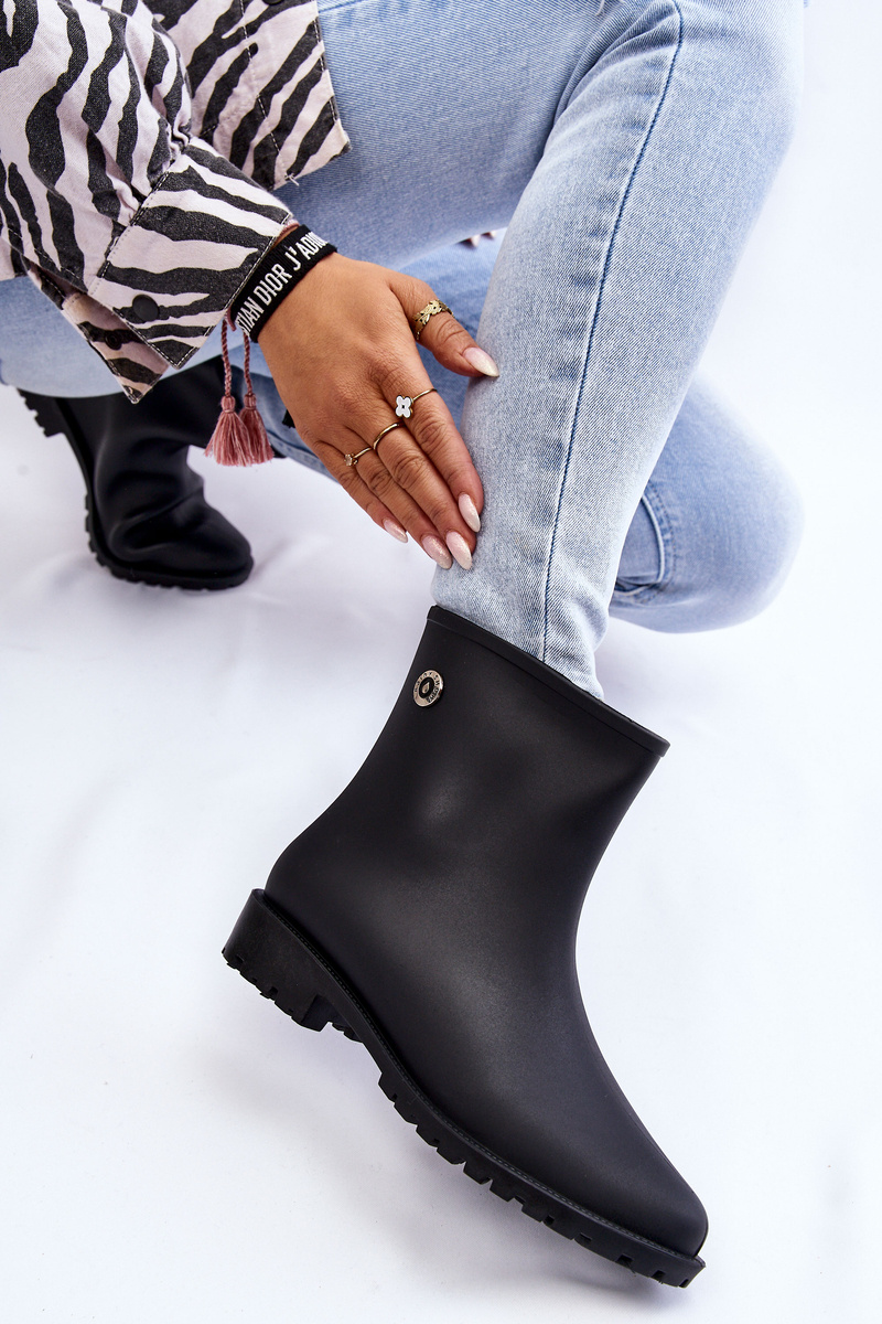 Dámske galoshes sú vyrobené z gumového plastu, ktorý je odolný voči vetru a dažďu. Posuvný model. Na strane hornej časti zdobený malý znak. Izolovaná prikrývkou obuvi vám vložka poskytne pohodlie počas používania. Okrem toho je vytiahnutý. Topánky boli položené na gumový pasca s plochou pätou. Pri výbere veľkosti navrhnite tabuľku veľkosti.