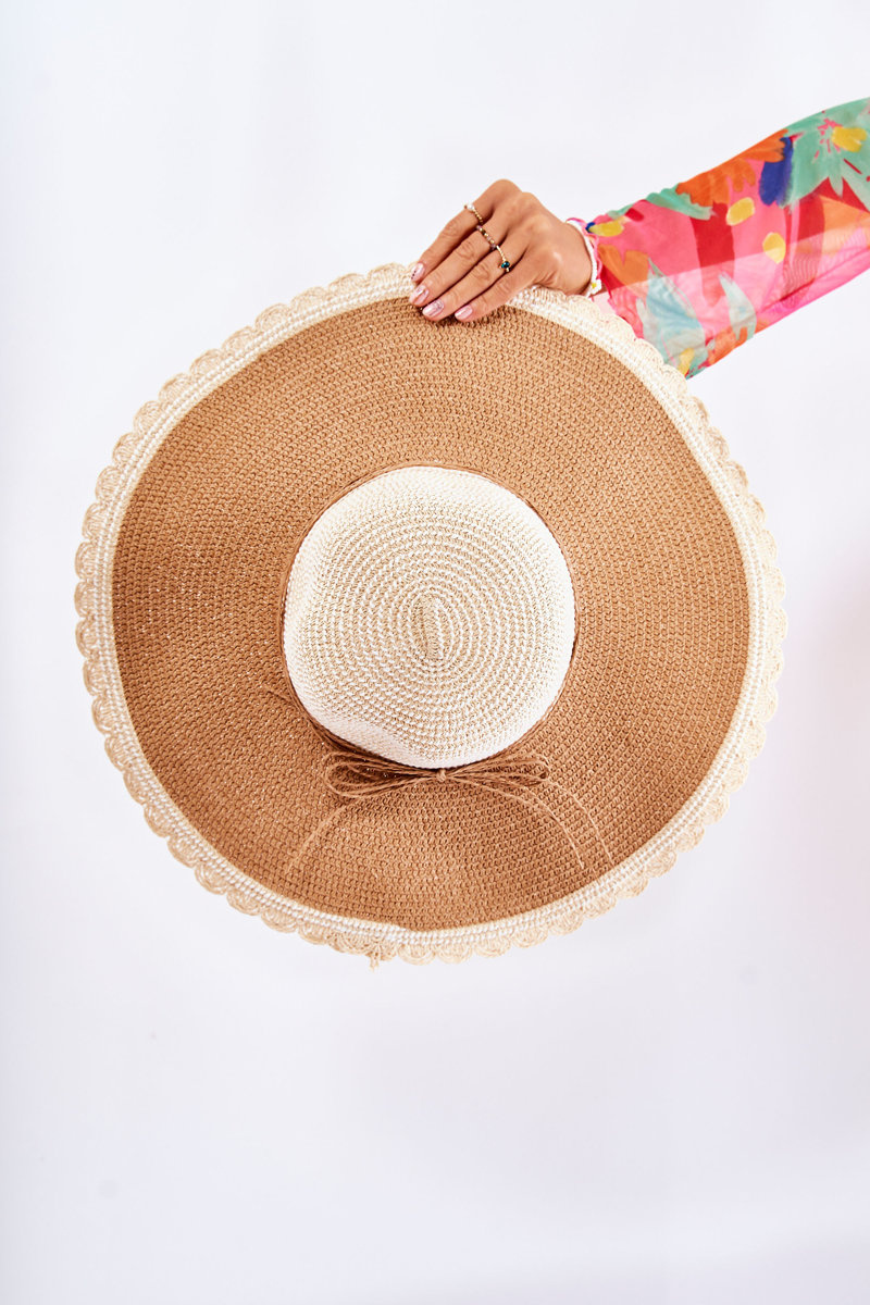 Dámsky klobúk s dekoratívnou šnúrou zviazanou lukom. Produkt je vyrobený zo 100 % papiera. Má reťazec, ktorý vám umožní prispôsobiť sa a prispôsobiť sa obvodu hlavy. Na okraji kruhového objazdu sú očarujúce ozdoby. Klobúk je skvelý na horúce dni! Nezabudnite skontrolovať našu kolekciu klobúkov!
