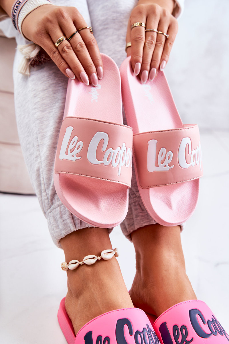 Pohodlné a veľmi ľahké dámske žabky od značky Lee Cooper. Vrchol je vyrobený z ekologickej kože s logom značky, zatiaľ čo vložka s plastovou podrážkou. Vytvorené na pohodlné použitie v letných dňoch. Klapky sa dobre prispôsobujú tvaru chodidla. Vložka týchto vložených topánok je profilovaná a odolná voči oderu. Perfektný model každý deň, pre bazén alebo prechádzku po piesočnatej pláži. Pri výbere veľkosti navrhnite tabuľku veľkosti.