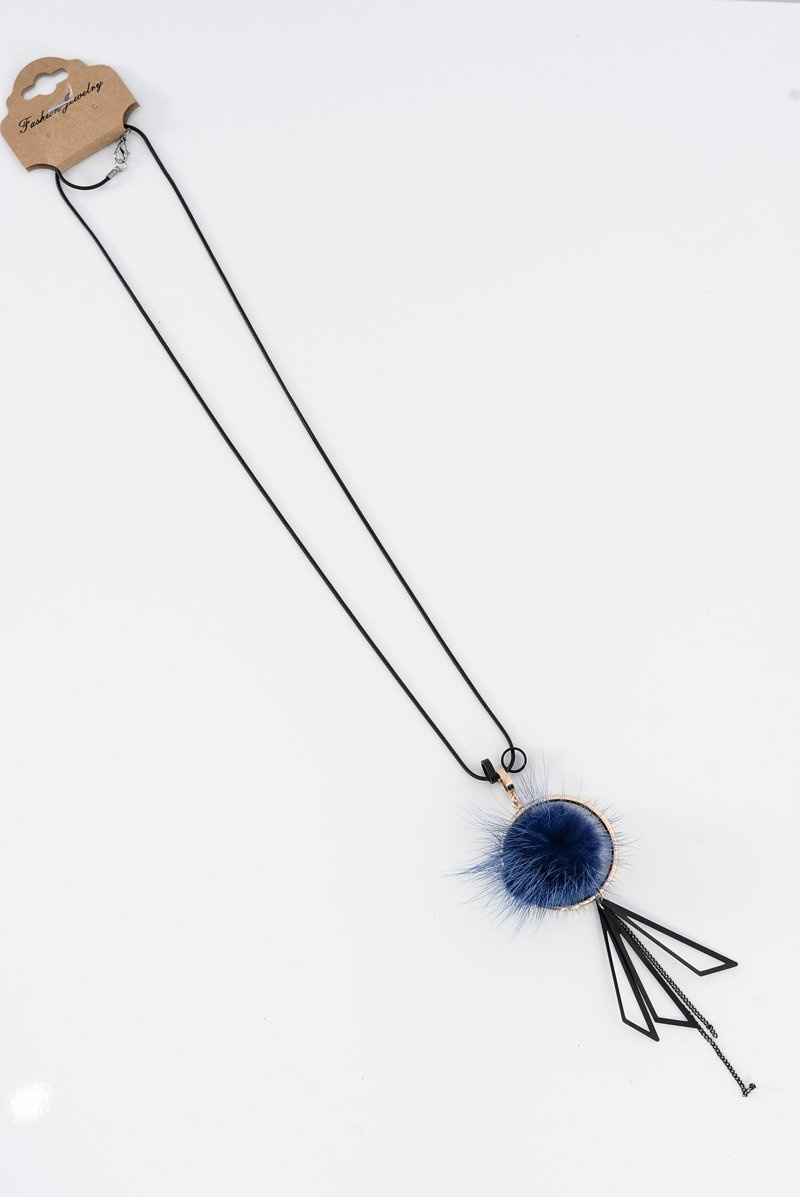 Dámsky náhrdelník s pompom dlhým reťazcom Navy Blue Choker