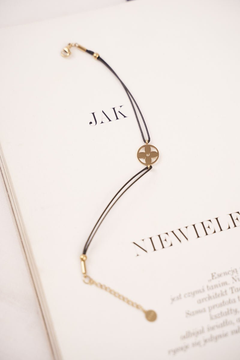 Dámsky náramok čierny strun celebrity zlatý Clover Clara